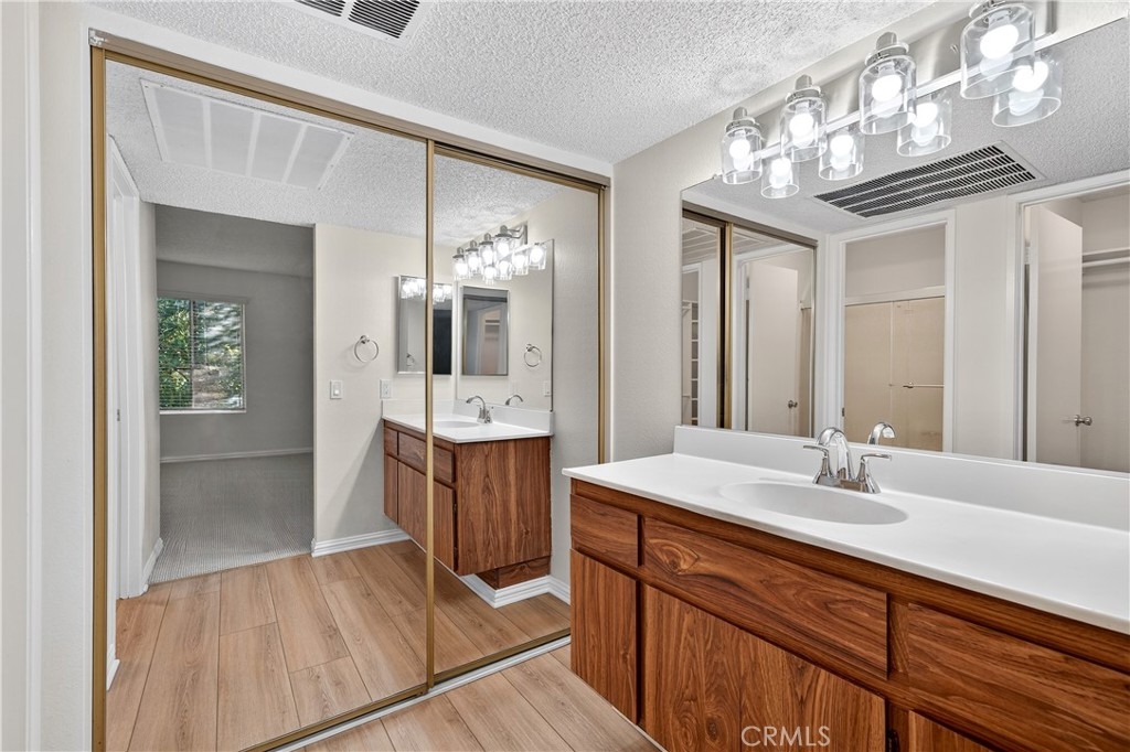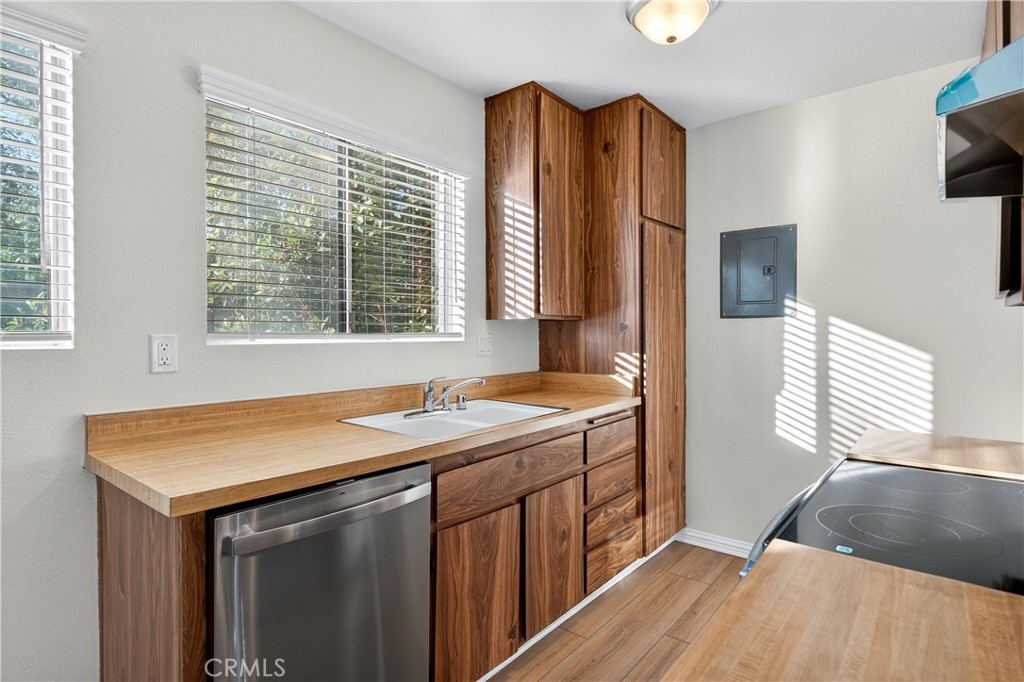 Bright and airy upper-level condo in the Aliso Creek Villas community. This home features cathedral ceilings, a private balcony, walk-in closet, and inside laundry. Recent updates include new window treatments, fresh paint, new flooring, baseboards, kitchen appliances, new electrical panel, electrical switches, outlets, light fixtures, and ceiling fan. The kitchen and bath have been refreshed with new faucets, garbage disposal, water valves, and a new toilet, ensuring comfort and reliability throughout. The community offers a great combination of amenities including one carport, three swimming pools, paid water, trash, and basic fire insurance. Conveniently located near shopping, restaurants, schools, and easy access to the 5 freeway, this home is perfect for first-time buyers or investors seeking a great opportunity in a central Lake Forest location.