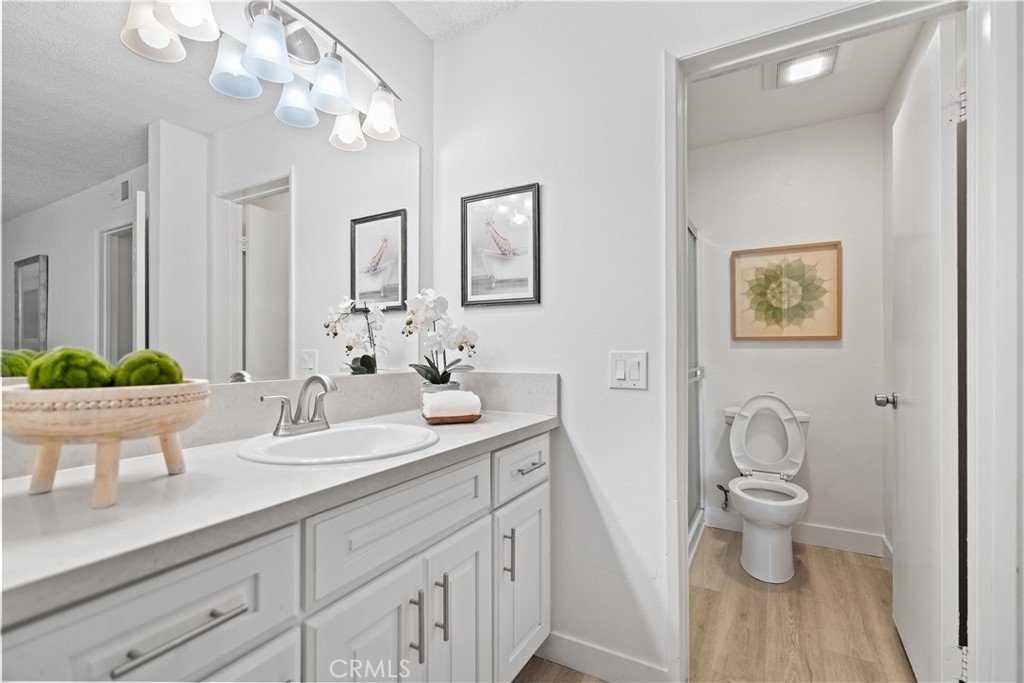 Welcome to Aliso Creek Villas in Lake Forest! Conveniently located near numerous shopping centers, restaurants and schools. In addition there are parks and walking trails just a few minutes away. The community has 3 pools, and kids play area. This condominium features a ground level location, two bedrooms and two full baths. a private patio with laundry room. Recent remodel has just been completed. Upgraded kitchen has new contemporary quartz counter tops, newer stainless steel appliances, new flooring. Both bathrooms have newer vanities, quartz countertops, mirrors, and fixtures. The master bedroom is spacious, has a walk-in closet, clean and new! HOA fee includes water, trash, hot water, and community maintenance of common area and pools. This property is move-in ready, located in a prime and popular area.
