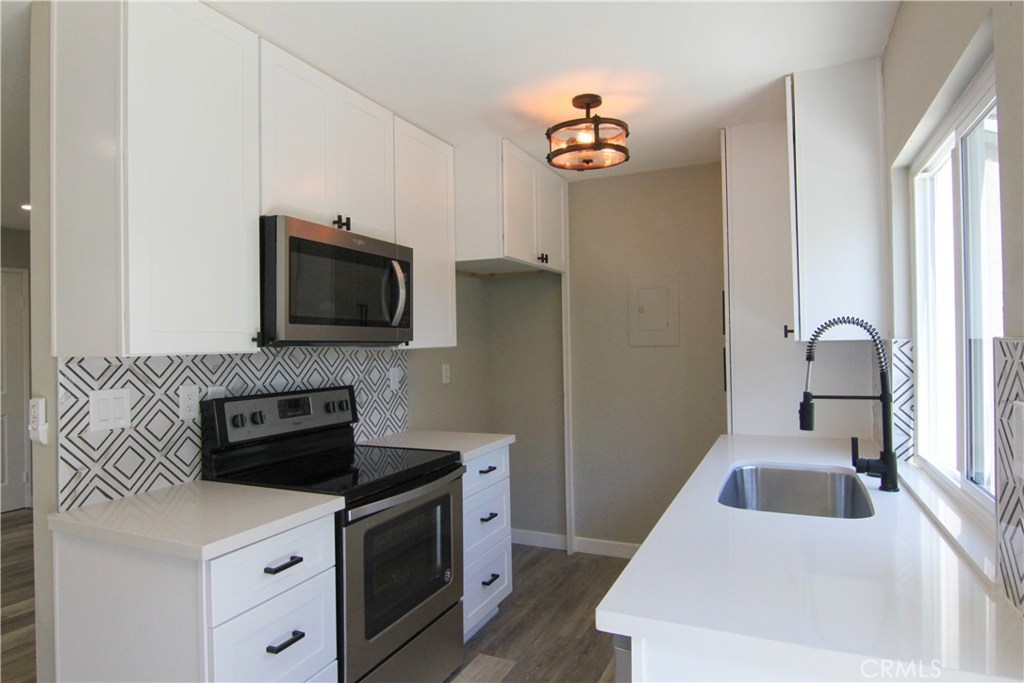 Welcome to this Beautiful 2018 Remodeled Lake Forest Condo! This property is ready for you to move right in and enjoy. Wide plank flooring flows throughout the living areas connecting the open concept layout. Step into the kitchen refreshed with new cabinetry, Quartz countertops accented by Waterjet Marble mosaic backsplash, and stainless steel appliances. This unit features new windows, new patio slider, new wall A/C unit, new interior doors, new plumbing fixtures and much more to list. Recessed lighting has been added in the living room and bedroom. The updated bathroom and indoor laundry are also perks with this property. This unit is located on ground level and has a nice size patio to entertain. The community features a sparkling pool and is near restaurants, shopping, entertainment and is commuter friendly. One of the best values in Orange County, view today!