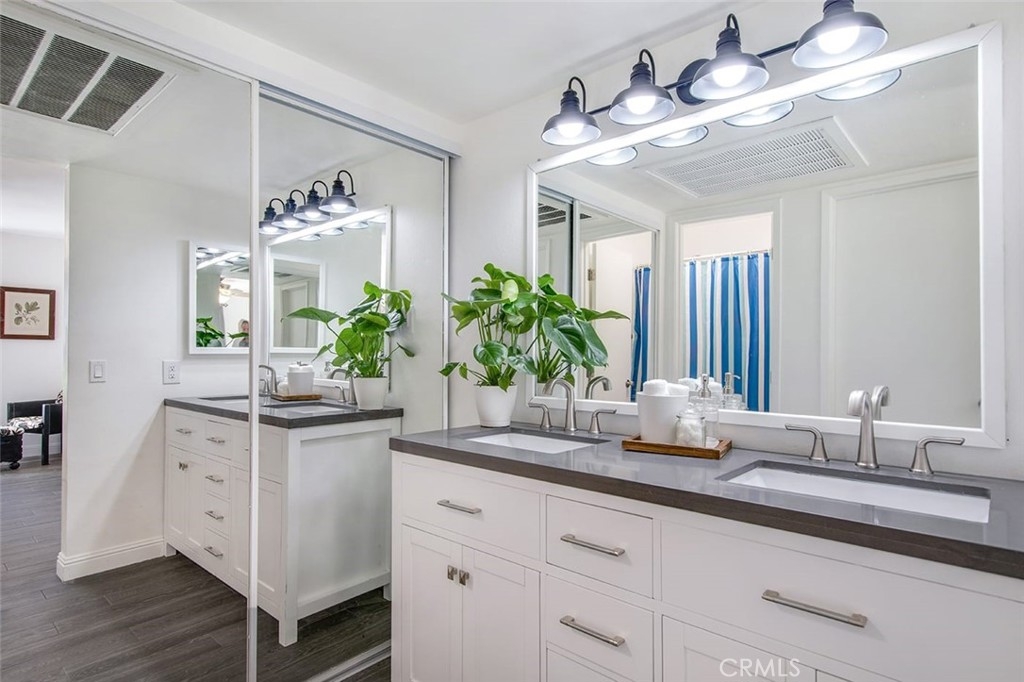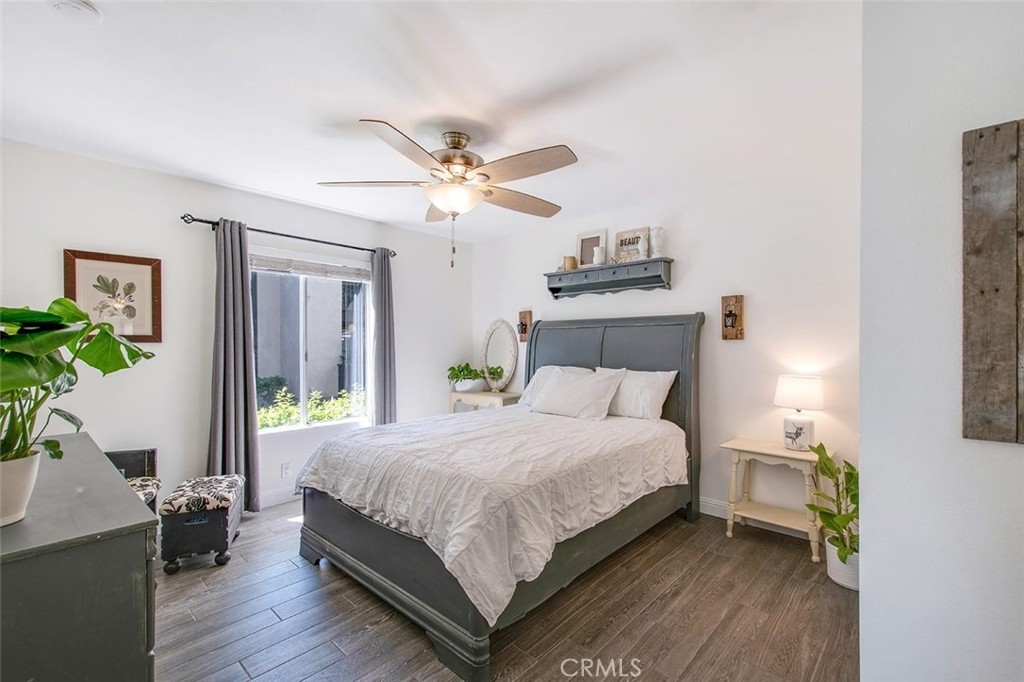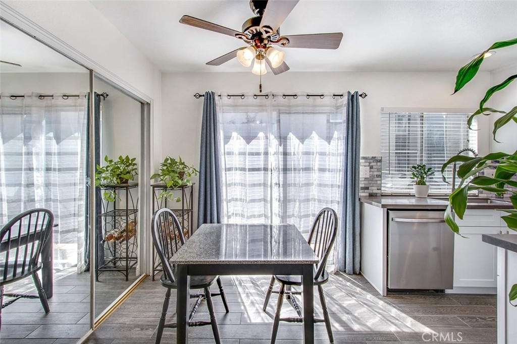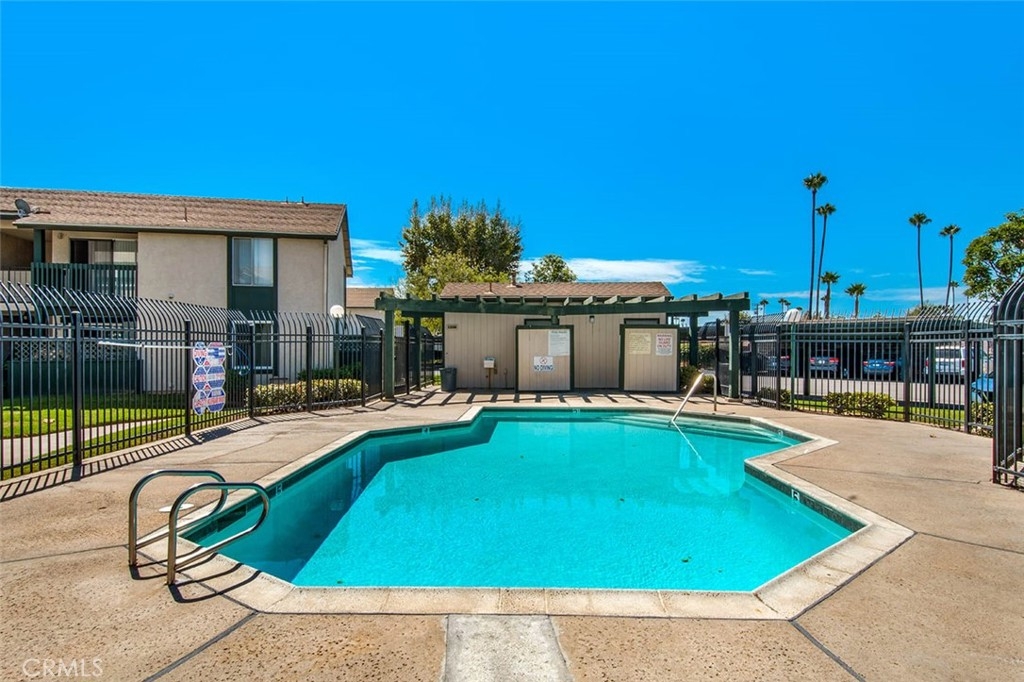 Must see beautifully remodeled, single story, end unit with vaulted ceilings and no one above or below. This house feels like a single-family home and is TURNKEY. There is an inside laundry area for a full-sized washer and dryer, four closets including one walk-in, and an enclosed private patio with a gate that leads to one of the three pools in the community. There is access to a large attic with plywood flooring for additional storage space. Updates include a completely remodeled kitchen with shaker style wood cabinets, large kitchen sink, 2020 appliances, new wood look porcelain tile flooring throughout, new dual sink vanity in bathroom, quartz countertops in kitchen and bath, 2 new ceiling fans, paint, keypad entry, new fixtures, and more.