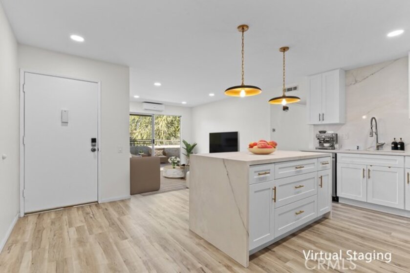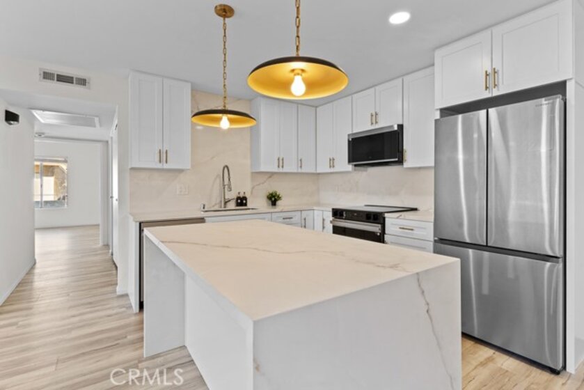 Fully renovated and never lived in post renovations 2-bedroom, 1-bath top-floor unit offering privacy and an open, light-filled layout. Upgrades include Lifeproof Arches Natural luxury vinyl plank flooring, Ducale White marble-look porcelain tile, marble countertops, and copper-colored like fixtures throughout. Modern kitchen with sleek cabinetry and updated finishes, plus a remodeled bathroom. Quiet upper-level location with no units above. Located in a well-maintained Lake Forest community near shopping, dining, parks, and convenient freeway access. True turnkey opportunity.