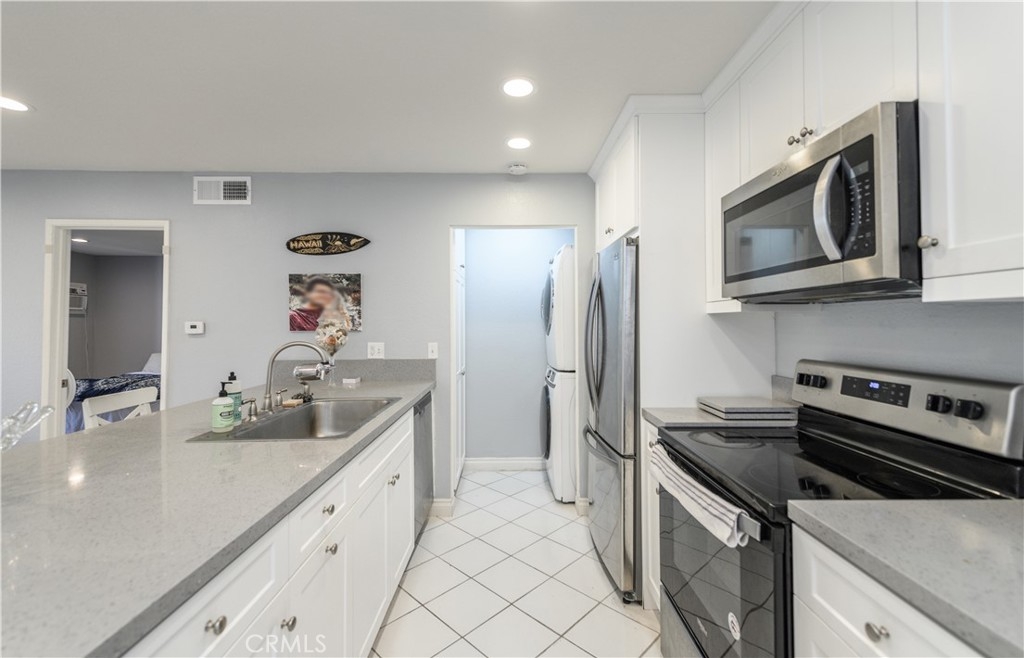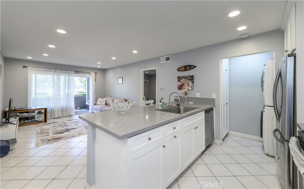 Introducing a charming and cozy 1-bedroom condo nestled in the heart of an urban oasis. This well-appointed highly upgraded residence offers a perfect blend of modern comfort and convenient city living, making it an ideal home for young professionals, couples, or those seeking a low-maintenance lifestyle. Upon entering, you are greeted by an inviting open-concept living space, thoughtfully designed to maximize both functionality and style. The living room boasts abundant natural light streaming through dual-pane sliding doors, creating a warm and welcoming ambiance throughout. The space is well-suited for relaxation and entertainment, making it perfect for hosting intimate gatherings or simply unwinding after a long day. The well-equipped kitchen features sleek quartz countertops, modern stainless steel appliances, and ample storage, making cooking a joy for aspiring chefs and culinary enthusiasts alike. Whether preparing a quick meal or indulging in gourmet creations, this kitchen effortlessly caters to your culinary needs. A generously sized bedroom awaits you at the end of a busy day, offering a serene retreat for restful nights. The bedroom is complemented by a well-appointed bathroom, complete with modern fixtures and a stylish vanity. From both the living room and bedroom, there are sliding doors to access the private patio where is spacious enough for outdoor sitting and summer BBQ. Steps away, there are tennis and basketball courts, playgrounds, and picnic areas. Easy access to freeway and plenty of shops and restaurants. A must see!