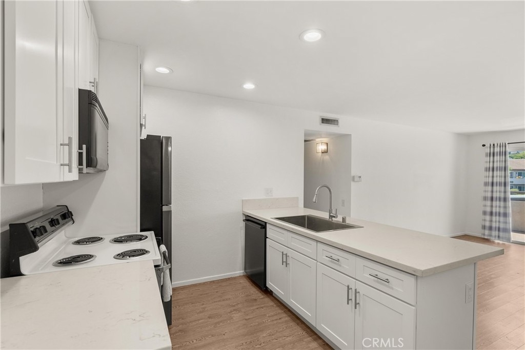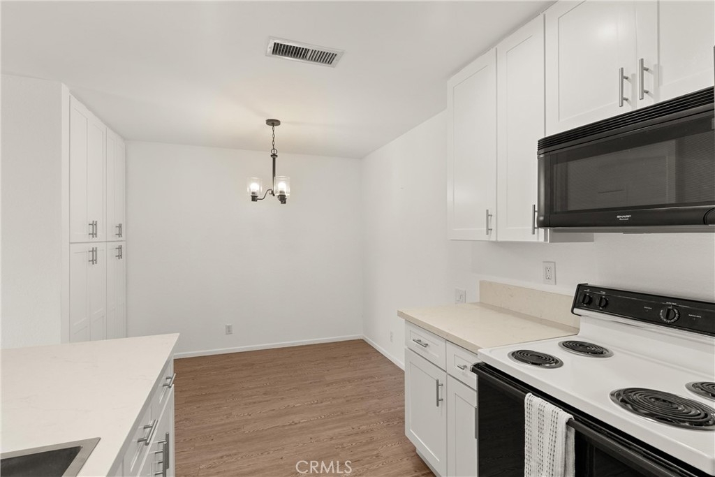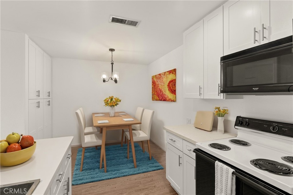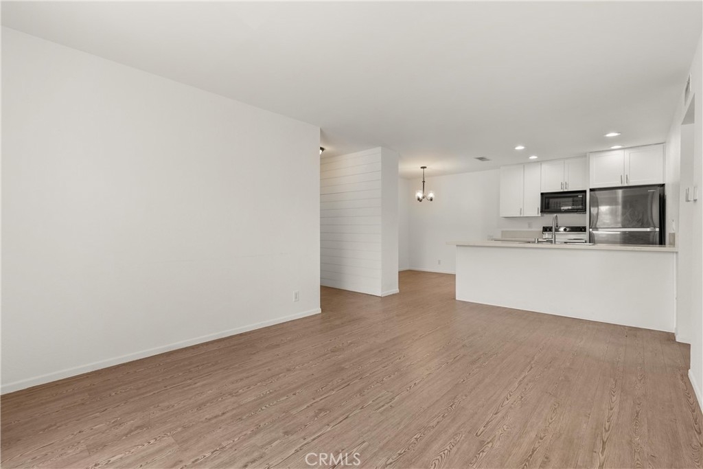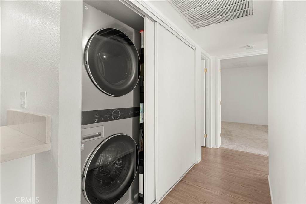 Welcome to the beautiful Bench Mark Villas community of Lake Forest! This upper-level, charming 2-bedroom, 1-bathroom condominium offers 904 sqft of well-designed living space, perfect for comfortable and stylish living, with no one living above. Step inside to a newly painted home, with quartz countertops and sleek laminate flooring throughout the home. Both natural light from the large sliding glass doors, as well as new recessed lights make this home light and bright. The spacious living area opens to a private balcony to enjoy the best of Southern California weather. The bedrooms are updated with new carpet and new closet mirrors. This home is equipped with central AC & heat, ensuring your comfort in every season. The Bench Mark Villas community features amenities such as playgrounds, lush green spaces, a short walking distance to Rimgate and El Toro Memorial Park, ideal for outdoor activities and family fun. All appliances are included, making this home move-in ready. Don’t miss this opportunity to own a piece of paradise in Lake Forest.