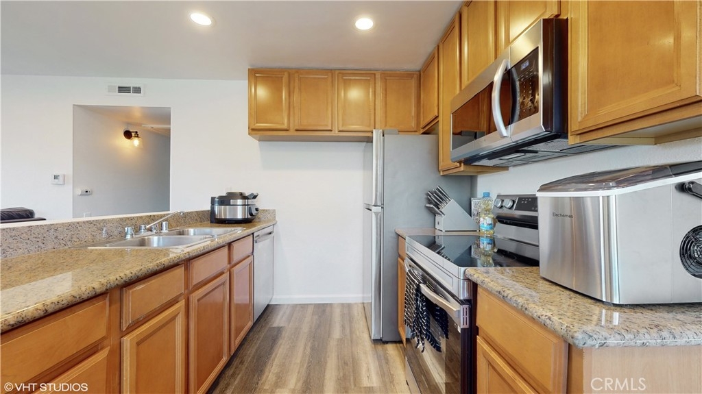 Welcome to your new home in the beautiful community of Bench Mark Villas in Lake Forest! This charming upper-level condo features 2 bedrooms, 1 bathrooms, and 829 square feet of living space. As you enter the front door, you'll be greeted by a spacious living room with large windows that let in plenty of natural light. The living room leads to a private balcony where you can enjoy outdoor living. The kitchen features granite countertops, stainless steel appliances, and plenty of cabinet space for storage. Additional features of this home include in-unit laundry, central heating and cooling. The complex has a park and well-maintained grounds. This home is conveniently located near shopping, restaurants, and easy access to the freeways. Don't miss out on this fantastic opportunity to make this home yours!
