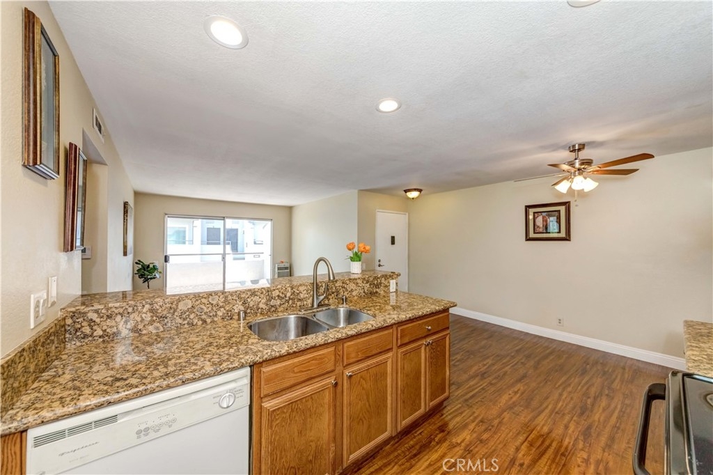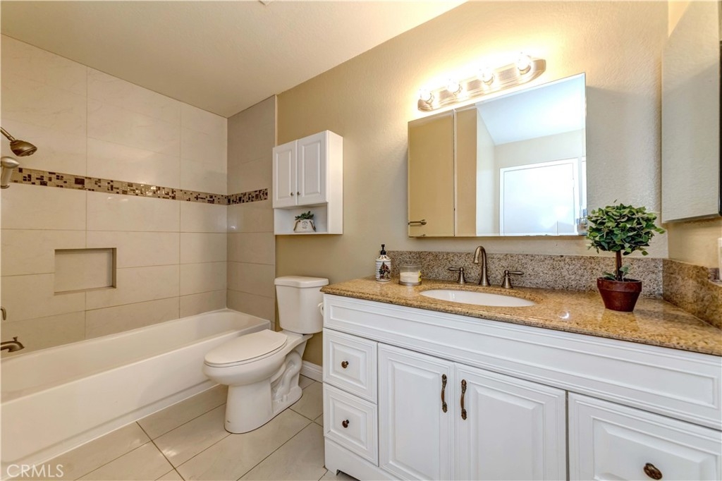 Welcome Home! This Cozy 2 bedroom,1 bath, upper level home is located within the Amazing community of Bench Mark Villas.The main living area is bright ,open and spacious with living, dining and kitchen areas. kitchen has granite countertops, recessed lighting and peninsula with bar seating.The living area offers plenty of space for the family and with access to the large patio. Down the hall way you will find the indoor laundry and spacious bedrooms with Laminate flooring throughout Wide double doors lead to the master bedroom with a large closet. The second bedroom has a sliding glass door leading out to the patio, as well as a nice closet. The bathroom is featured with tiled shower/tub combo and granite countertops. This home has ample storage spaces, indoor laundry hookups and air conditioning. The HOA dues include water and trash.There is direct access to Rimgate Park which includes tennis courts, basketball courts, a playground and picnic areas. This community is conveniently located close to schools, shopping, restaurants and freeways.This is the perfect place to call home!