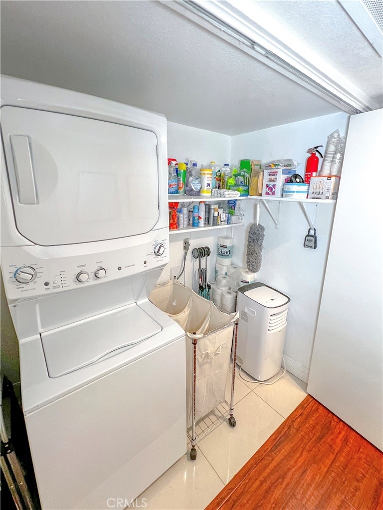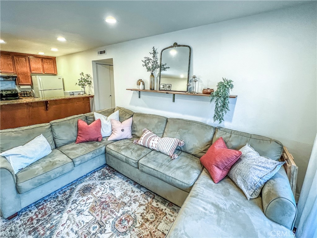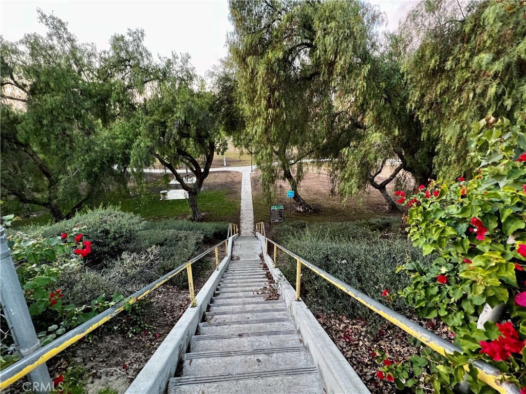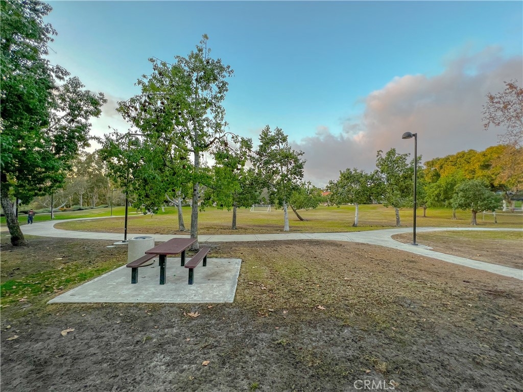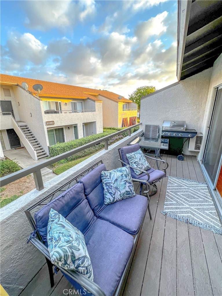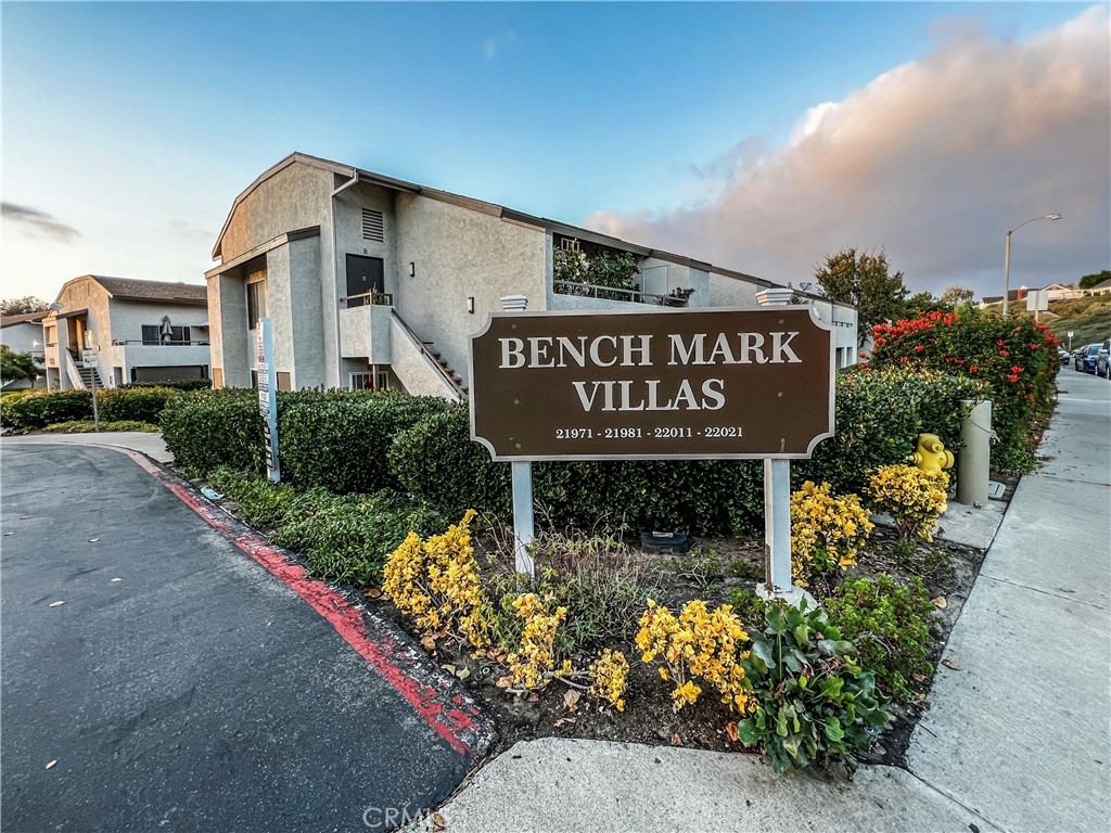 Perfect starter home in the highly desirable Bench Mark Villas community! Spacious floor plan with tons of natural light. Large open kitchen, dining room and living room with sliding glass door leading to a private balcony with storage closet. Kitchen features granite peninsula bar with room for barstools, ample storage, pantry and new dishwasher. Large double doors open to the generously sized primary bedroom. Bathroom features new fixtures and open shelving. Ultra convenient closet laundry with newer stacked washer & dryer and plenty of storage space. Adjacent to Rimgate Park, this quiet and pet friendly neighborhood features tennis & basketball courts, playgrounds and picnic areas and the beautiful green space of El Toro Memorial Park. Located conveniently near schools, shopping and freeway access.