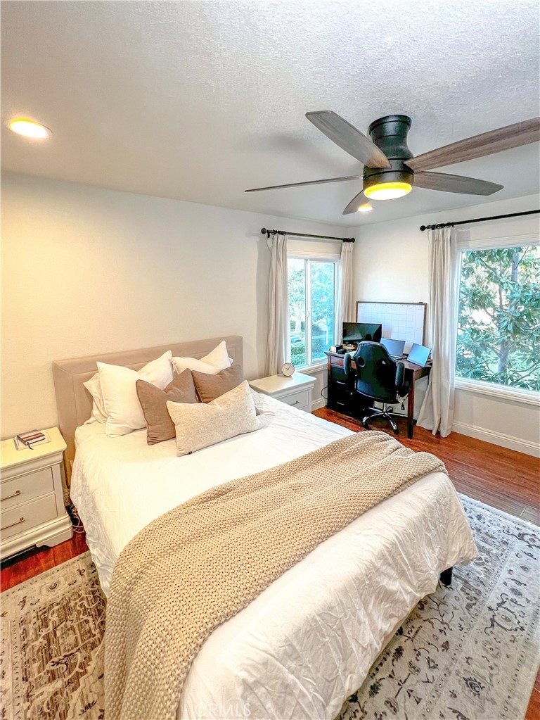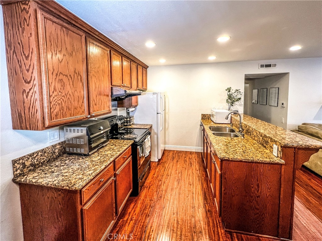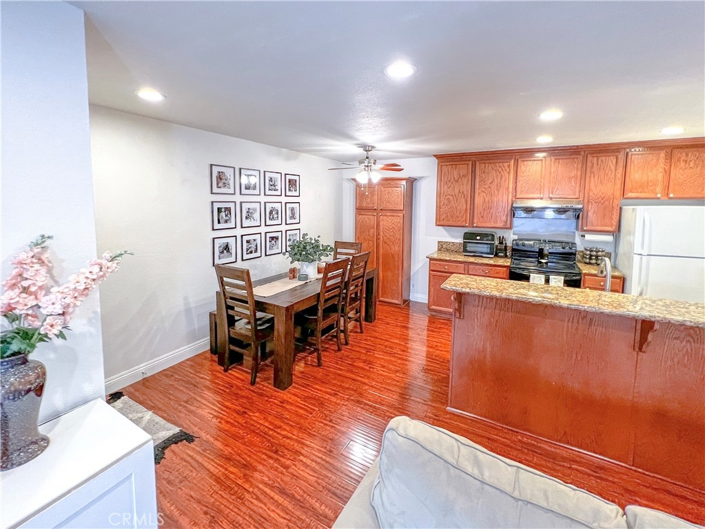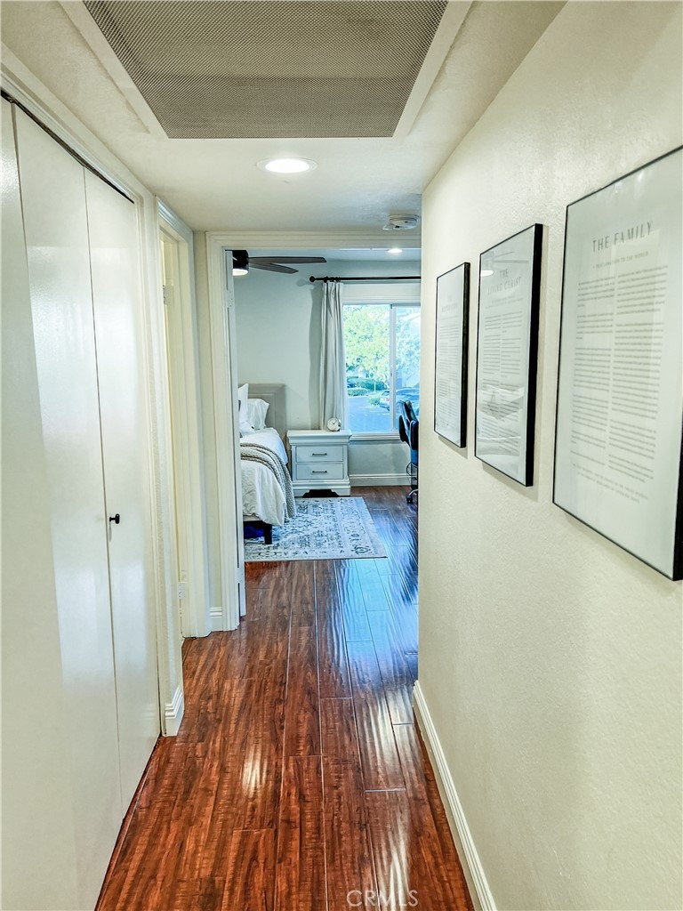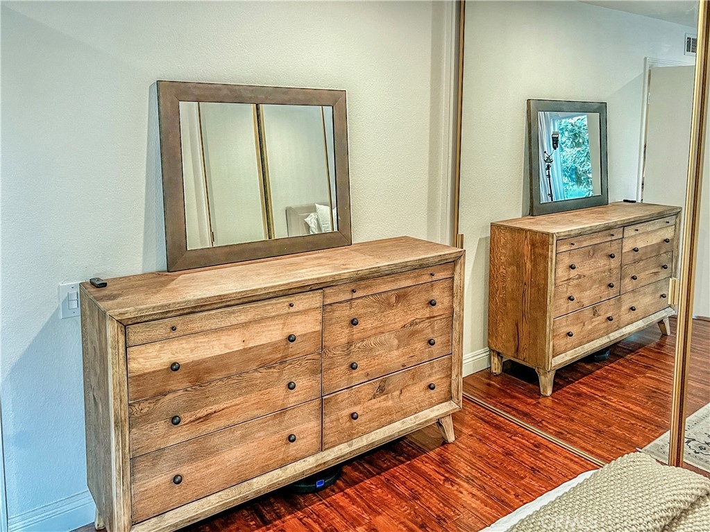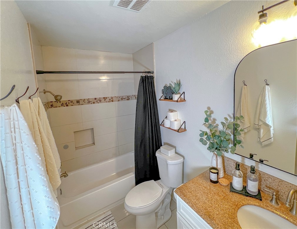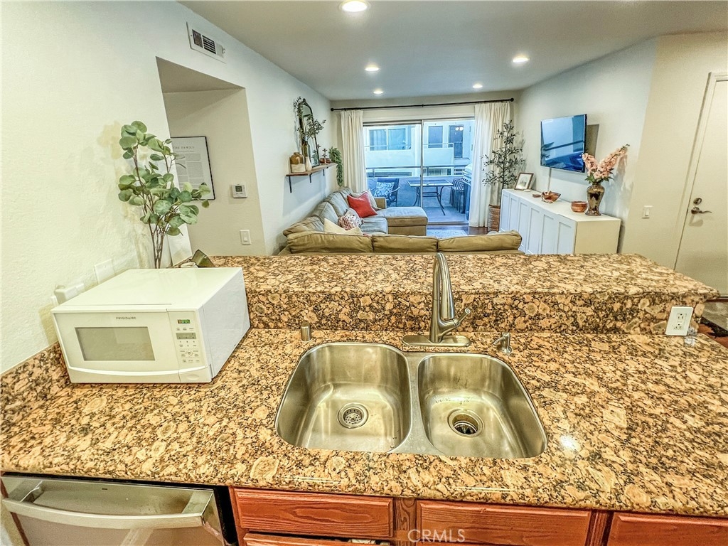 Perfect starter home in the highly desirable Bench Mark Villas community! Spacious floor plan with tons of natural light. Large open kitchen, dining room and living room with sliding glass door leading to a private balcony with storage closet. Kitchen features granite peninsula bar with room for barstools, ample storage, pantry and new dishwasher. Large double doors open to the generously sized primary bedroom. Bathroom features new fixtures and open shelving. Ultra convenient closet laundry with newer stacked washer & dryer and plenty of storage space. Adjacent to Rimgate Park, this quiet and pet friendly neighborhood features tennis & basketball courts, playgrounds and picnic areas and the beautiful green space of El Toro Memorial Park. Located conveniently near schools, shopping and freeway access.