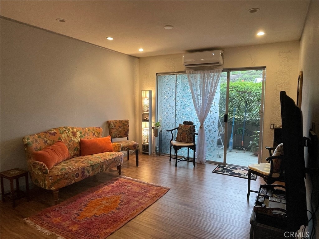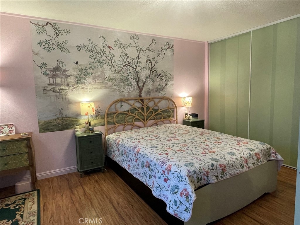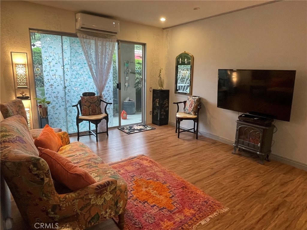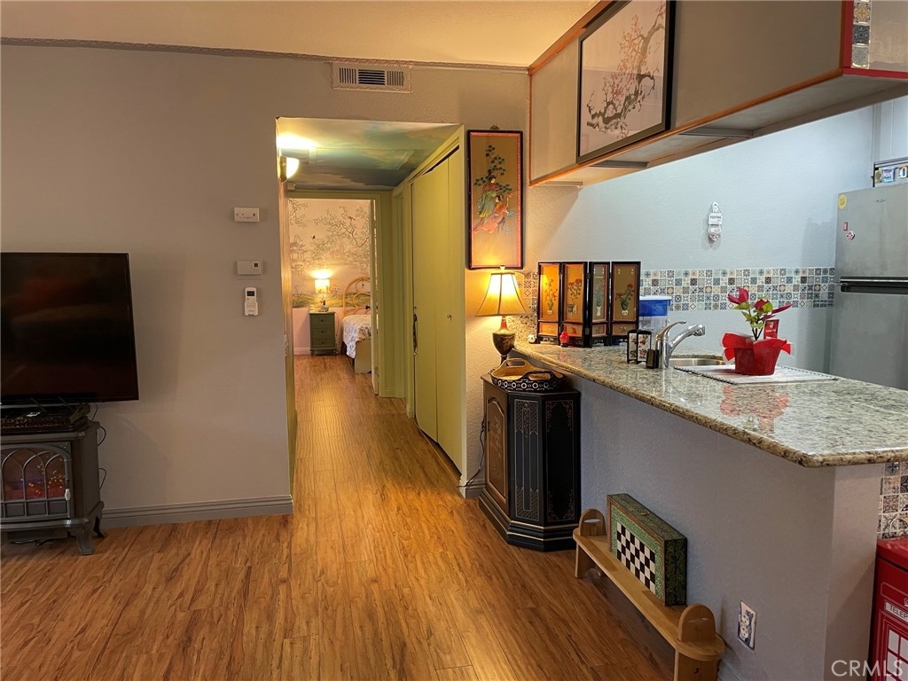 Welcome home to this turn-key, beautiful Condo located in the most prime location in the Bench Mark Villas community just 15 mins drive from the World famous Laguna Beach!This is a pleasant green area corner unit looking out to Rimhurst Drive. Entering through the front door you are greeted by an open and spacious living room, dining area, and kitchen. There is continuous luxury vinyl plank flooring throughout this condo, kitchen and a new bathroom unit with beautiful Stone Tiles. The kitchen is updated with granite countertops, custom porcelain cabinet pulls, and ample cabinet storage. The dining room has a large dual pane window overlooking the community greenery and park. Walking down the hallway to your left is the guest bedroom, with a large sliding glass door for ample natural light and a beautiful chrome and crystal fan, with retractable blades. The main bedroom is huge, with a beautiful, crystal chandelier and a wall of floor to ceiling closets. The beautifully updated bathroom has a custom built, new shower stall with non-slip flooring and bars for safety. This home has 2 Split Type Air Conditioner units … A must in the 100-degree temperatures due to Climate change! The same units provide ample heat in the winter. The patio is oversized, with a huge storage closet. Water & trash included in HOA dues. Buyer To Verify Square Footage on Their Own. Newer Dishwasher & Microwave. 2 permitted parking spaces. Welcome home! Please submit a complete offer with POF's, scores for all borrowers & lender approval.