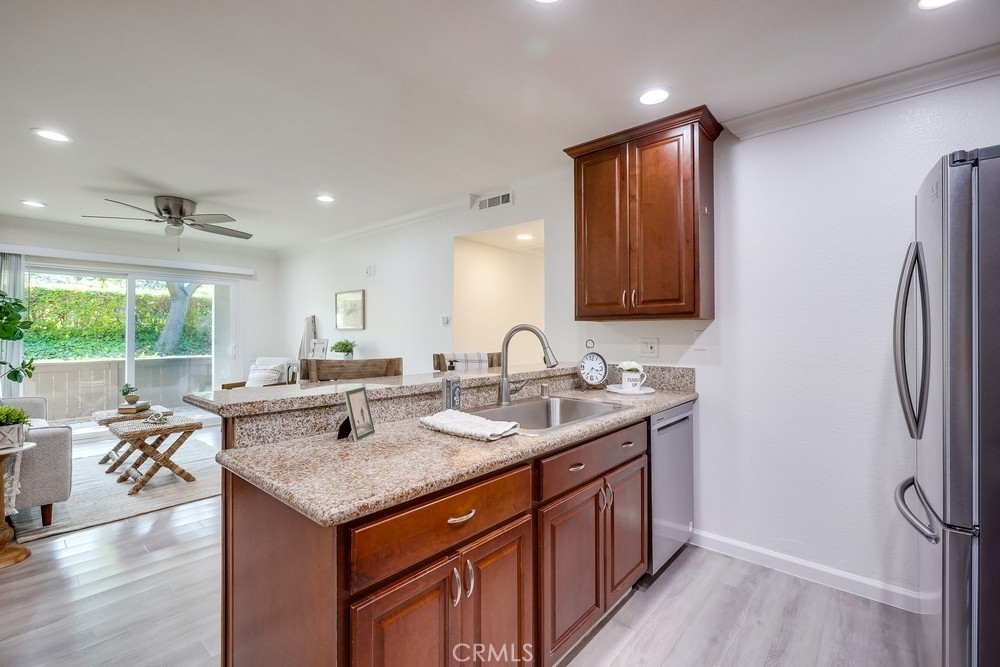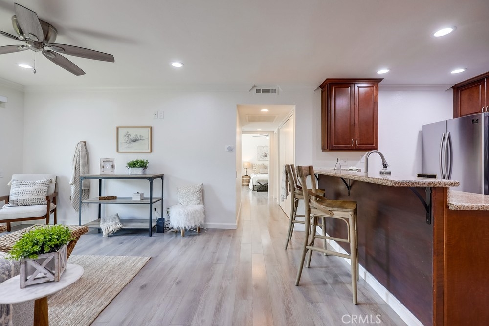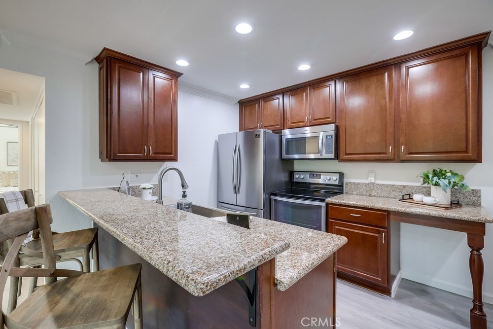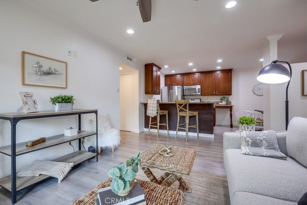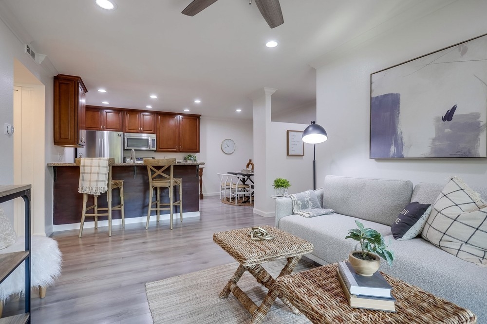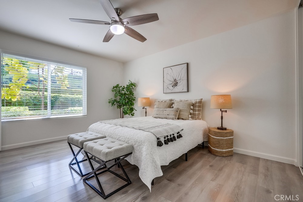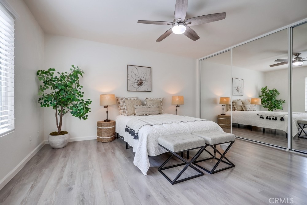 Welcome to this beautifully updated 2 bedroom, 1 bathroom downstairs unit in the desirable Bench Mark Villas community. Recently improved with newer floors, upgraded windows, sliding glass doors, and ceiling fans in every room, this home offers both style and comfort. The kitchen features a newer sink, dishwasher, and recessed lighting, making it perfect for everyday living and entertaining. The bathroom boasts dual sinks and a freshly reglazed tub, adding a touch of luxury. Additional upgrades include a California closet in the smaller bedroom, new laundry doors, a brand new Nest thermostat, and a brand new wall mounted AC unit to keep you cool all year round. Enjoy outdoor living on your private patio, complete with an extra storage closet. The property also has convenient washer/dryer hookup and easily accessible parking. Located in a safe community with great schools and the beautiful Rimgate park nearby, this home has everything you need for comfortable living. Don’t miss out on this opportunity to own a stunning home in Bench Mark Villas!