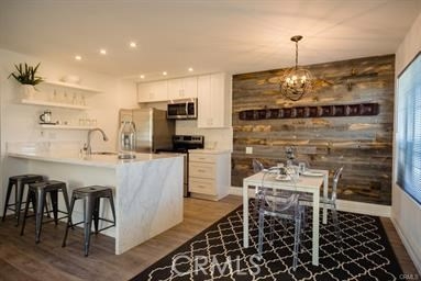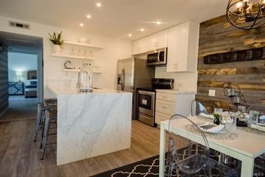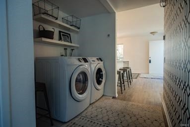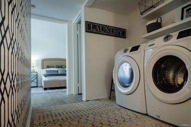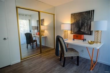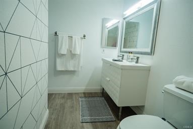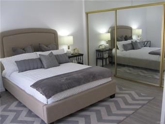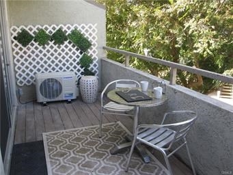 STUNNING, dramatic total remodel with finest quality upgrades. EXCEPTIONAL.. highly upgraded upstairs end unit with greenbelt views. This 2 bedroom 1 bathroom boasts an indoor laundry with new washer/dryer, large private patio, DREAM chef's all new European kitchen shaker cabinets with pull out shelves, with top of line Calacatta marble counters & waterfall end, stainless energy efficient NEW appliances including fridge/freezer with water/ice, microwave, stove, dishwasher, new stainless sink, new plumbing fixtures, recessed lighting.. Remodeled bathroom with double vanity sinks, tub/shower, custom mirror & light fixture.. Plastered ceilings, new modern light fixtures, new baseboards, new A/C.. Private patio/balcony with storage closet.. Dream large master with mirrored closets galore. New luxury vinyl wood plank flooring throughout, new paint, drapes and so much more. This is a total steal with prime location, light & very bright. TURNKEY..TURNKEY condition and priced to sell. Note HOA includes water, gas & trash. Plenty of resident & guest parking. Close to great shopping, restaurants, freeways & entertainment.