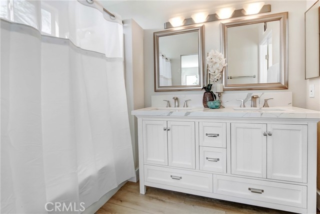 Must see this fully remodeled detached home with a view located in the Brittany community of Foothill Ranch. On the edge of the community backing up to a beautiful avocado tree farm and undeveloped space, this peaceful and serene location is sure to impress. Remodeled from top to bottom, the home is move-in ready and ready to enjoy. The wonderfully remodeled kitchen features white shaker style cabinets with soft close doors and drawers, quartz countertops, stainless steel appliances, and a breakfast bar. Waterproof luxury vinyl plank flooring installed throughout the home. Both bedrooms have attached bathrooms with new vanities, quartz counters, and designer fixtures. A spacious loft area connects the two bedrooms and has an area for a television. The larger master bedroom features a walk in closet, beautifully remodeled bathroom, soaker tub, ocean & beautiful views out the window. The backyard is very spacious and includes a built in barbeque, grass lawn, planter areas with drip system and drought tolerant plants.