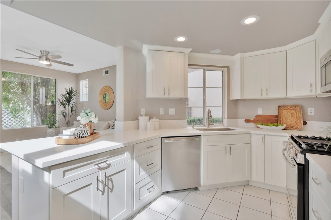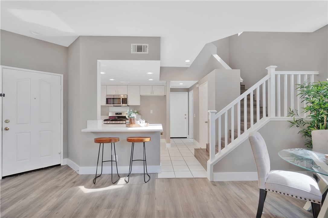 Nicely upgraded detached 3BR/2.5BA home on a private oversized lot with a 2 car garage and driveway, grassy yard and spectacular sunset/city views! The kitchen has been tastefully upgraded complete with sparkling white quartz counters, soft close white shaker cabinets, new stainless steel appliances and deep stainless steel farmhouse sink and it opens up to the family room with peninsula bar seating. Both full baths have just been fully remodeled and feature premium quartz counters, white shaker cabinets, beautiful custom tile work and all new fixtures. The spacious master bedroom features a private en-suite bath with oversized shower and double vanity as well as a large walk-in closet. Upgraded wood laminate flooring flows throughout the entire home. The home is located in the highly desirable Brittany at Foothill Ranch community and features community pool, low HOA, no Mello-Roos, award winning schools and quick access to freeways, shopping and entertainment HURRY! THIS ONE WON'T LAST LONG! ** VIRTUAL TOUR NOW AVAILABLE **