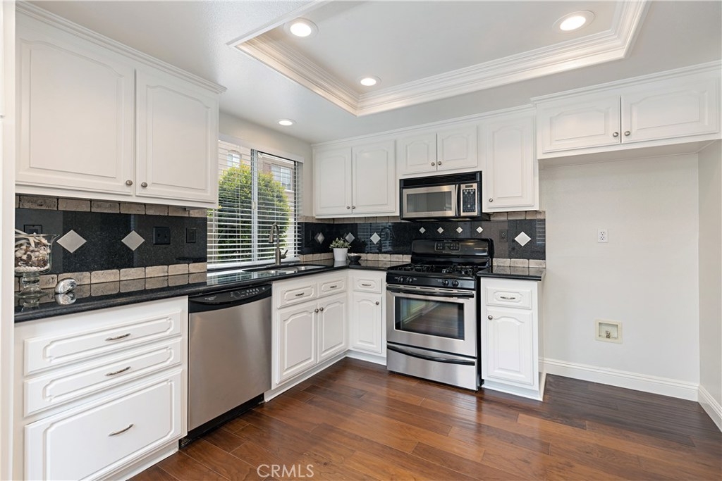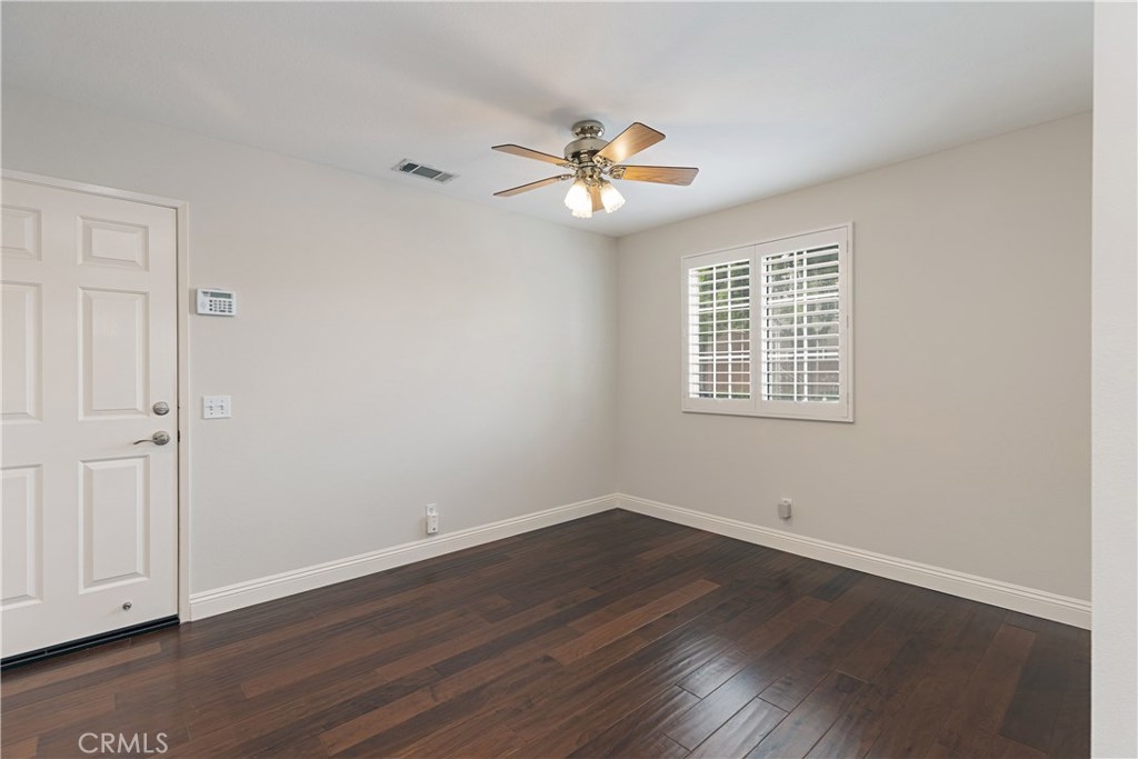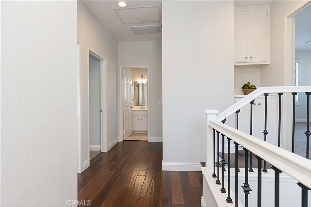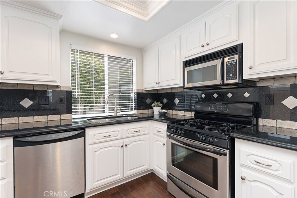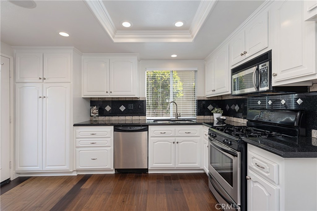 Don't look any further! Ideally located detached condo in the desirable Brittany community of Foothill Ranch! This largest plan home in the tract has been freshly painted and sits on a corner location for optimum privacy. Beautiful hardwood floors throughout this open concept floor plan to include the stairs and boasts so much more! Light and bright kitchen has white cabinetry, granite counters, upgraded backsplash, and stainless steel appliances for the most discerning chef! Living room is open to kitchen and has granite faced fireplace and white plantation shutters. Separate dining room and downstairs powder bathroom for your guests make this home a slam dunk! Master bedroom has master en-suite bathroom with dual sinks, neutral stone flooring and three sets of closets- one with mirrors! Laundry is situated on second floor with stainless steel washer and dryer! Good sized secondary bedrooms have New carpet and share a stone floored bathroom with shower/tub! Home features New designer carpet in bedrooms, New Paint, plantation shutters, ceiling fans, fireplace, recessed lighting, backyard pavers and newer backyard fence. Patio is perfect sized for entertaining and is low maintenance. Two car garage is attached and has cabinet built ins for lots of storage. Located near toll roads, Foothill Ranch Towne Center shopping, restaurants galore, parks and award winning schools! Low HOA and No Mello Roos! Don't miss out on this turn key home!