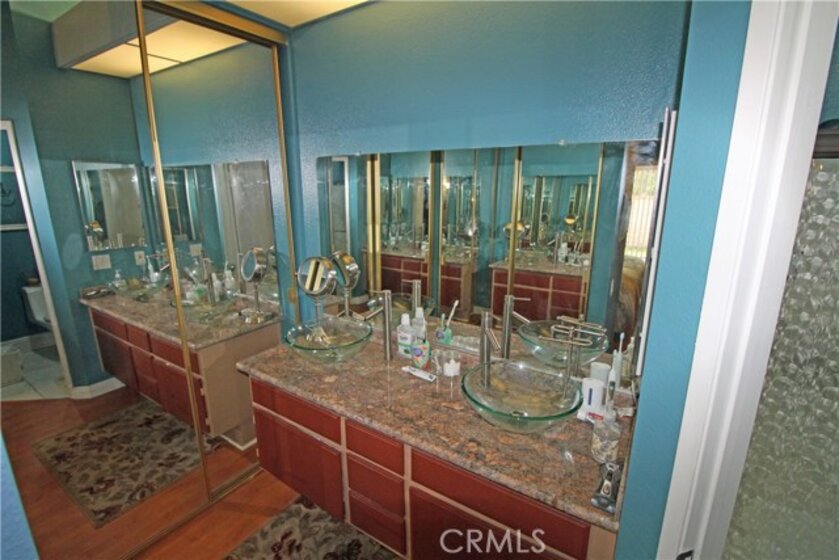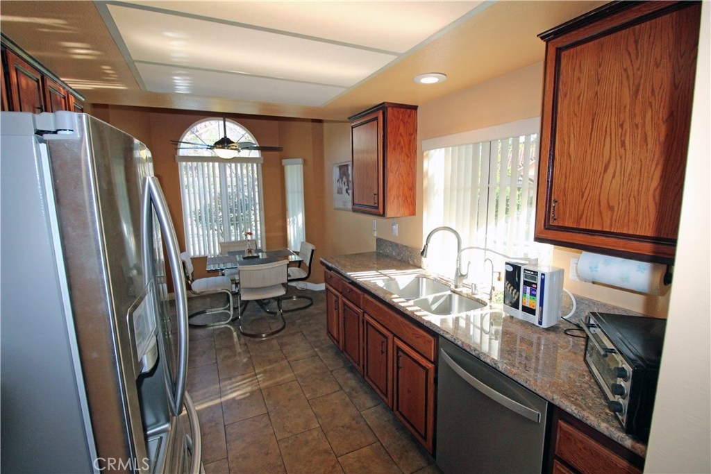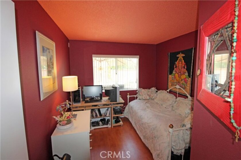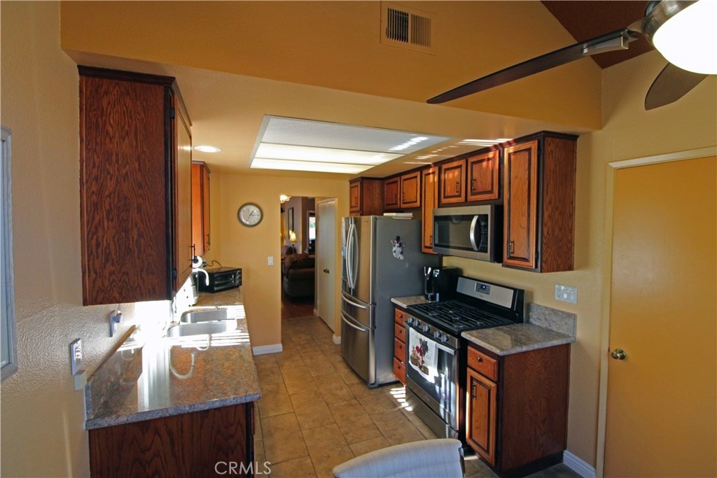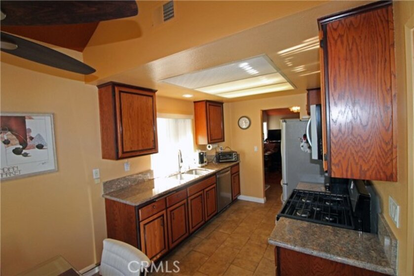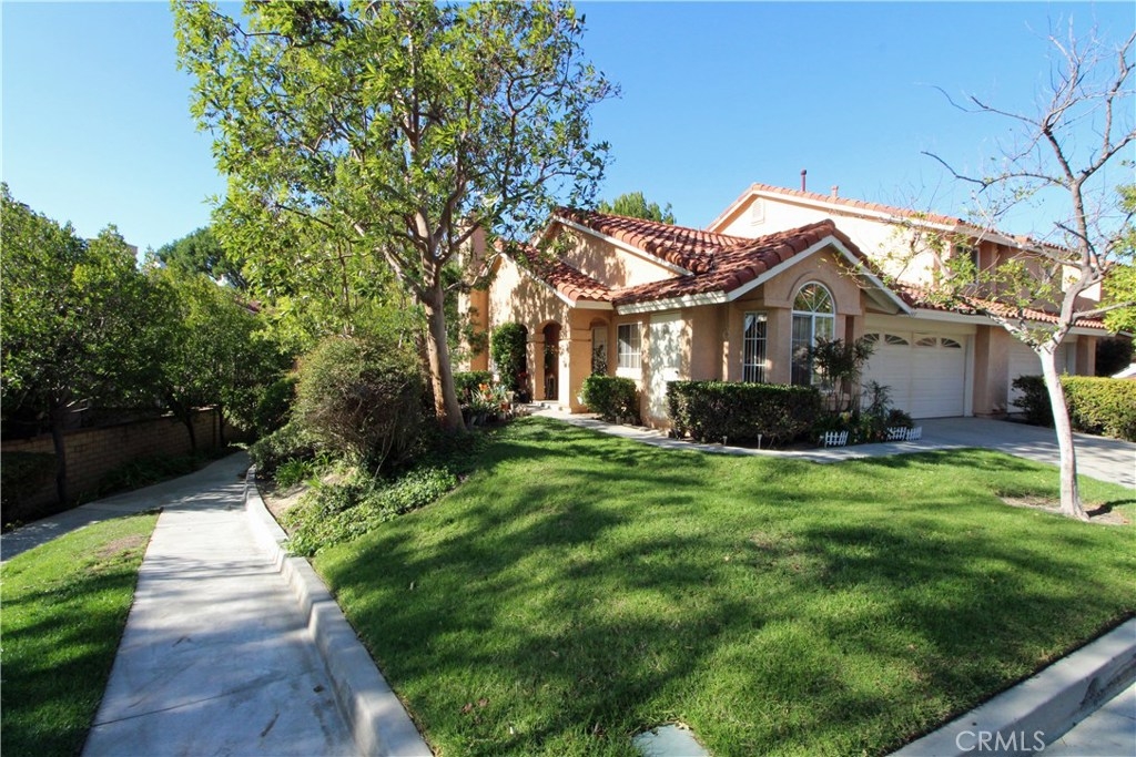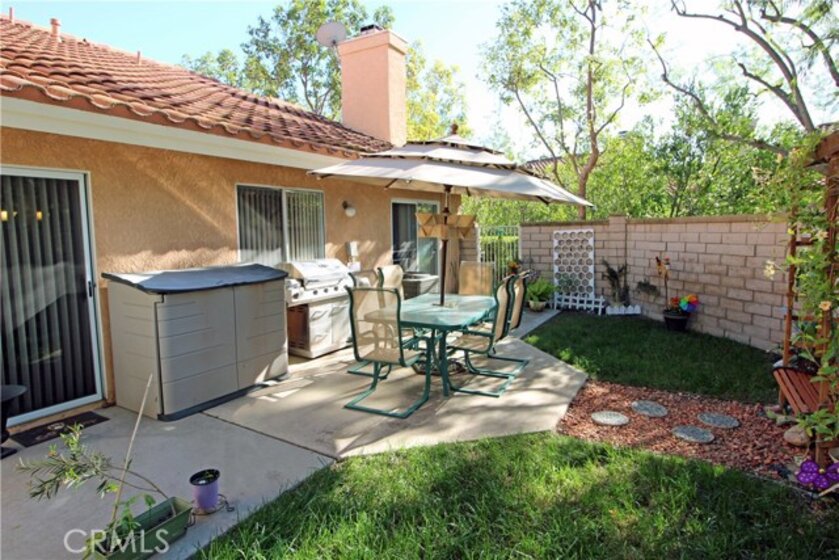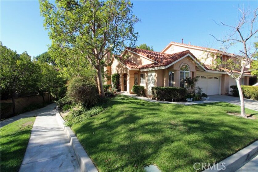 VERY PRIVATE SINGLE LEVEL END UNIT!!! 2 BEDROOM, 2 BATH, 2 CAR ATTACHED GARAGE, 971 SQUARE FEET!!! Custom upgrades through out home. Light & bright kitchen includes granite counters, newer cabinets, newer stainless steel appliances, dishwasher, oven/stove, microwave and stainless steel sink. Separate breakfast nook with custom ceiling fan and garden window. Ceramic tile floors in kitchen and breakfast nook. Open living room with custom tile fireplace, vaulted ceiling opens out to private yard. Dining area currently being used as a office. Laminate wood floors in living room and dining area. Large base boards, custom paint and vertical blinds throughout. Main floor master bedroom includes laminate floor, vertical blinds, lg base boards, vaulted ceiling that opens out to private rear yard. Master bath has granite counter, custom dual glass sink vanity, mirrored closets and tub/shower with custom slider. Main floor 2nd bedroom with laminate floors vertical blind and lg base boards. Over size new AC and furnace . 2 car attached garage with roll top door with windows, extra storage shelves and attic storage. Walking distance to community pool, spa and BBQ area. Close to schools, shopping, dining, entertainment, 241 toll road & Whiting Ranch. Low taxes. No Mello Roos
