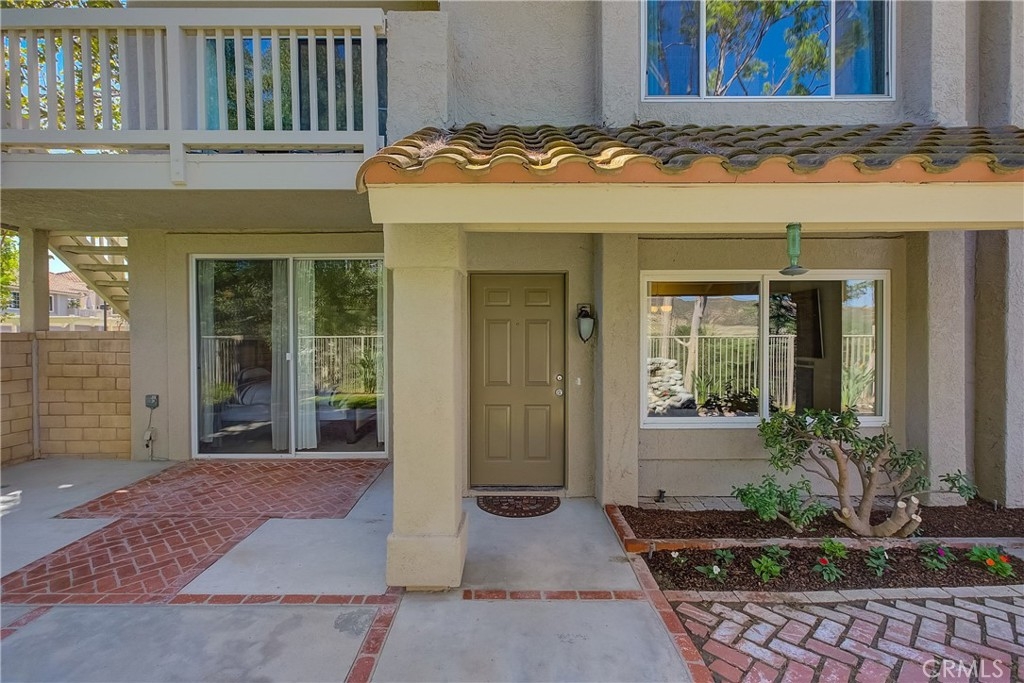 INCREDIBLY RARE END UNIT WITH EXPANSIVE VIEWS! Welcome to 18910 Canyon Summit, a move-in ready lower level unit with no steps and amazing views of the Saddleback mountains from every room. This spacious 2 bedroom, 2 bath condo features a private, beautifully landscaped patio with a tranquil water fountain and enough space to add a hot tub. Quiet interior location within the tract with no through traffic. Enter into a bright and open floorplan with hardwood floors and a cozy fireplace. Remodeled kitchen boasts granite countertops, stainless steel appliances, and opens to the dining area (currently set up as an office). Gorgeous travertine tile adorns the primary bedroom suite, with its own en suite bath with a walk-in shower and a sliding door to the patio. Secondary bedroom has its own full bath just across the hallway. Attached 1-car garage with direct access features EV charger and overhead storage, and a convenient inside stackable laundry comes with the washer & dryer! Seller will also leave the 65” TV and soundbar in the living room. All rooms are wired for CAT-6 network/Coax cable. Canyon View association offers two community pools with spas, a playground, clubhouse for gatherings, lush greenbelts, and more! Top-rated schools, low taxes, no Mello-Roos, and easy access to the 241-toll or Santiago Canyon. Welcome Home!