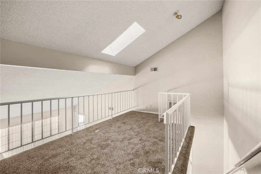 Beautiful 1 bedroom plus loft, 1 bathroom, 2 story condo in the community of Portola Hills in Lake Forest! Enjoy a light, bright, open floor plan with an inviting fireplace, private balcony, and an open kitchen. Kitchen features include white appliances, wood flooring, and a small breakfast bar. The spacious bedroom features mirrored closet doors, carpet flooring, and a shower-in-tub in the bathroom. Additional property highlights include vaulted ceilings, a skylight, an inside laundry closet, and a 1 car garage. Community features include a swimming pool, spa, and playground. Convenient to area shops, restaurants, and easy access to freeways and The Toll Roads!