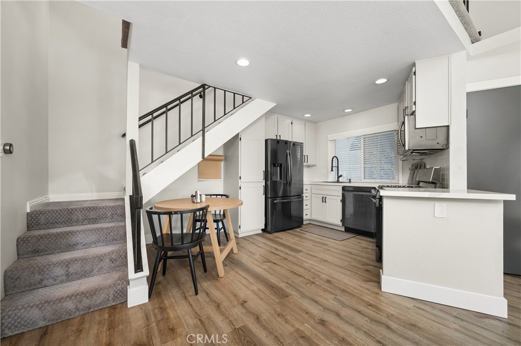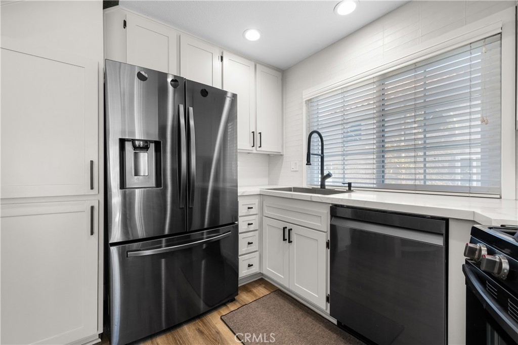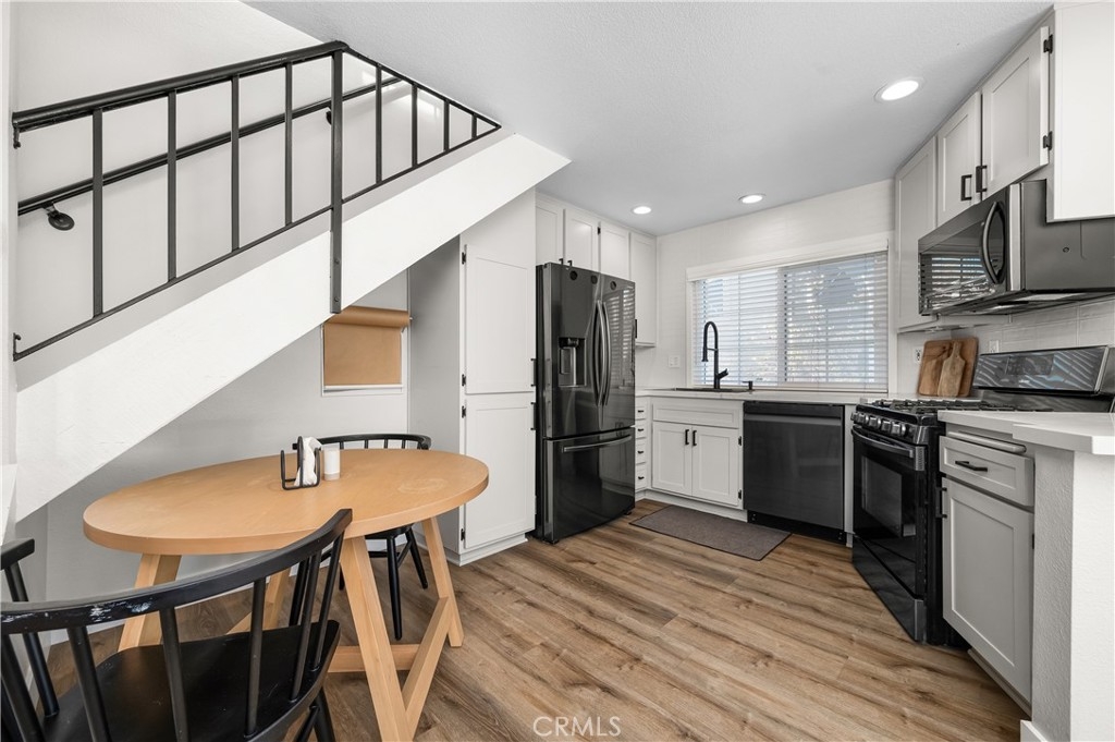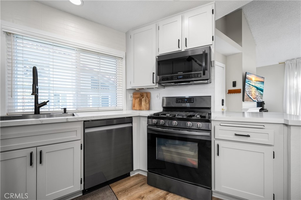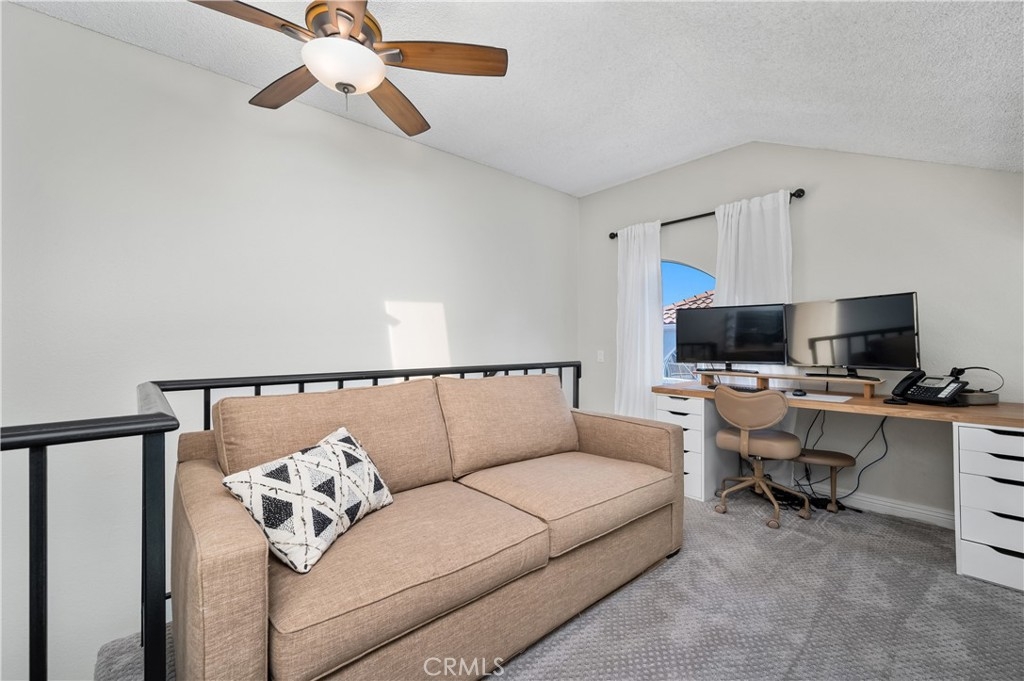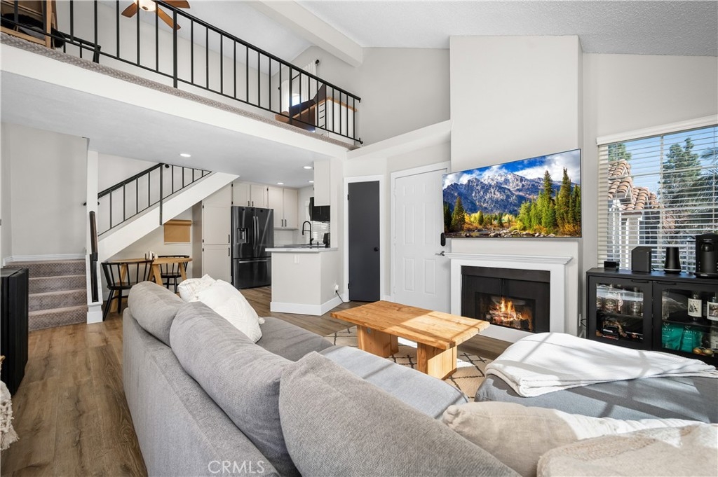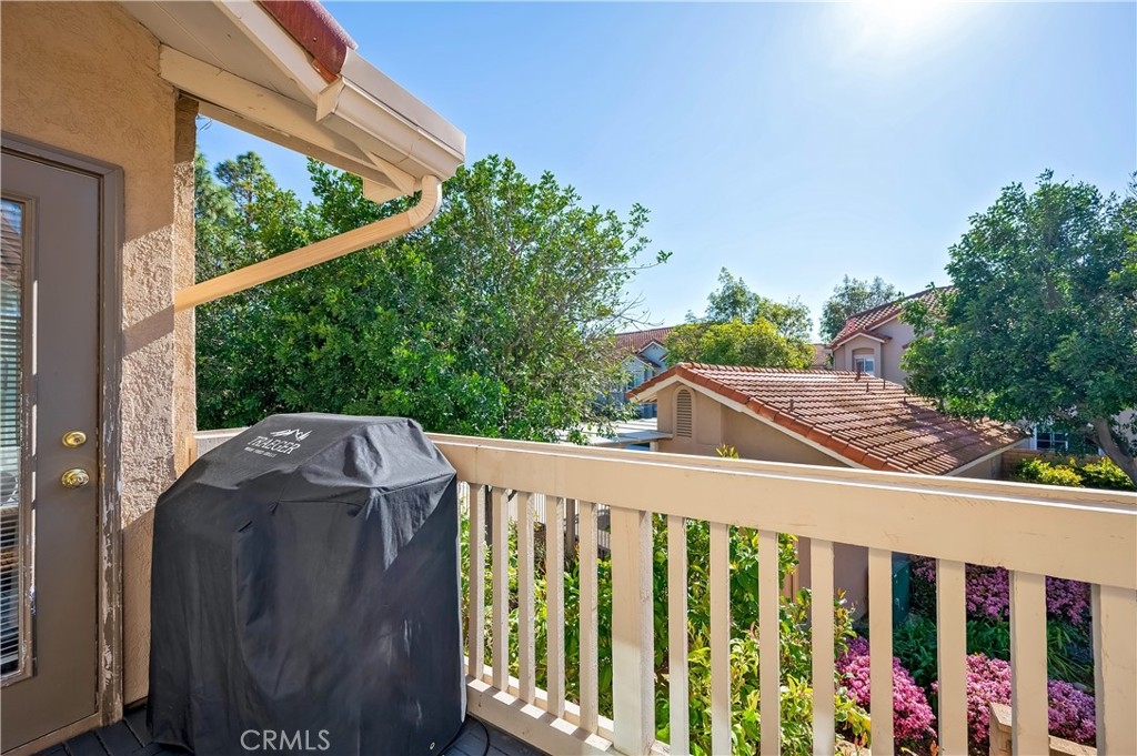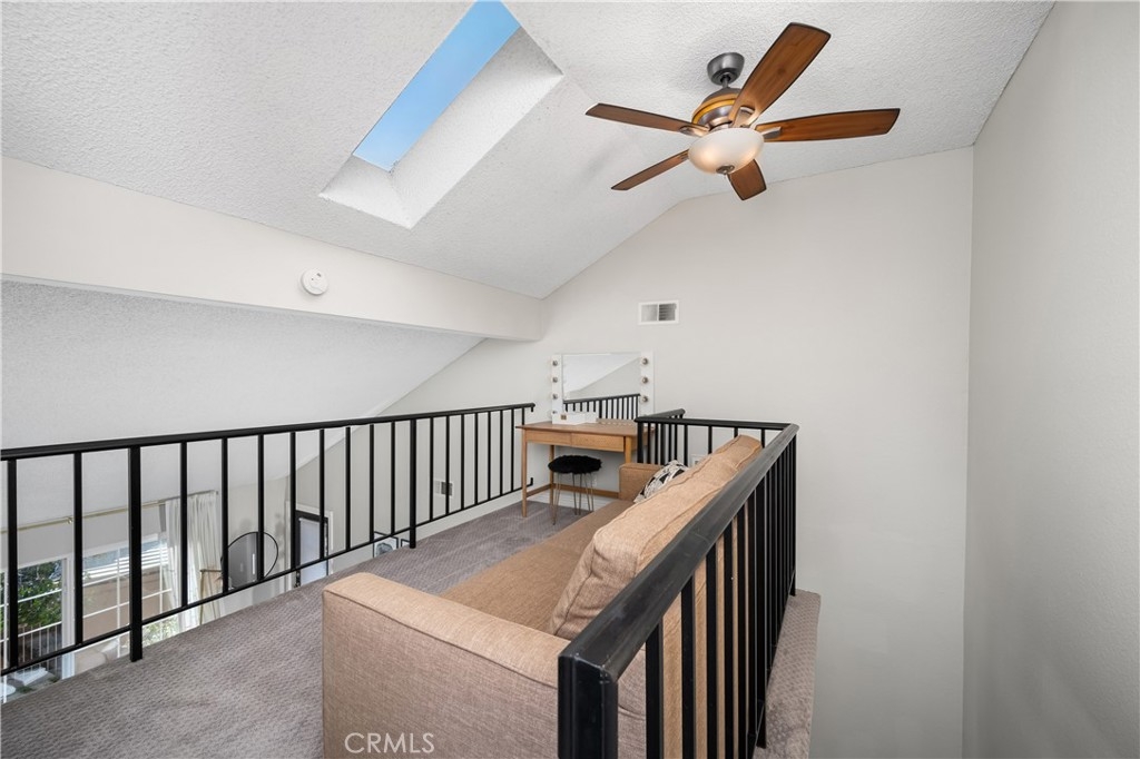 STUNNING 1 BEDROOM CONDO W/ UPSTAIRS LOFT! Dive into the heart of comfort and style with this beautifully designed 1 bedroom + loft condo, nestled in a vibrant community rich with outdoor activities and amenities. This unique property stands out with its high vaulted ceilings, welcoming you into a space that feels both expansive and intimate. The heart of this condo shines with newer quartz countertops, refaced cabinets featuring upgraded hardware, a stylish upgraded backsplash, and newer appliances. Cooking and entertaining are made effortless and enjoyable in this modern kitchen. LVP flooring and recessed lighting throughout the condo set a contemporary tone, while new carpet in the bedroom adds a touch of coziness. The living room, anchored by a gas fireplace, opens up to a spacious outdoor balcony patio, offering seamless indoor-outdoor living. Accessible from both the living room and bedroom, this patio is the perfect retreat for relaxation or entertaining. The upstairs loft, bathed in natural light from the skylight, presents versatile living space that can be transformed into a second bedroom, home office, or creative studio. Double pane windows enhance the tranquility and efficiency of the home, ensuring a quiet and comfortable environment year-round. Unique to this unit is a 1 car detached garage, coupled with the rare benefit of its own driveway, offering ample parking and convenience. Located steps away from the condo are the natural wonders of Whiting Ranch Wilderness, Santiago Equestrian Center, Portola Park, and Portola Dog Park. Whether your passion lies in hiking, biking, or simply enjoying the outdoors with your four-legged friend, this location has it all. Residents enjoy access to a pool, spa, and clubhouse, further enhancing the living experience with spaces for relaxation and socialization. This loft-style condo represents a perfect blend of modern living, convenience, and access to nature. It's ideal for those seeking a dynamic lifestyle, surrounded by the beauty and outdoor activities that define the area. With its thoughtful upgrades and prime location, this condo is a rare find and an opportunity not to be missed.