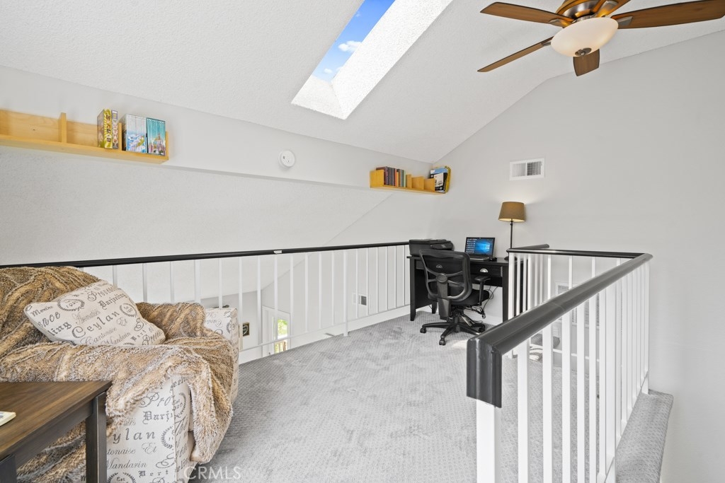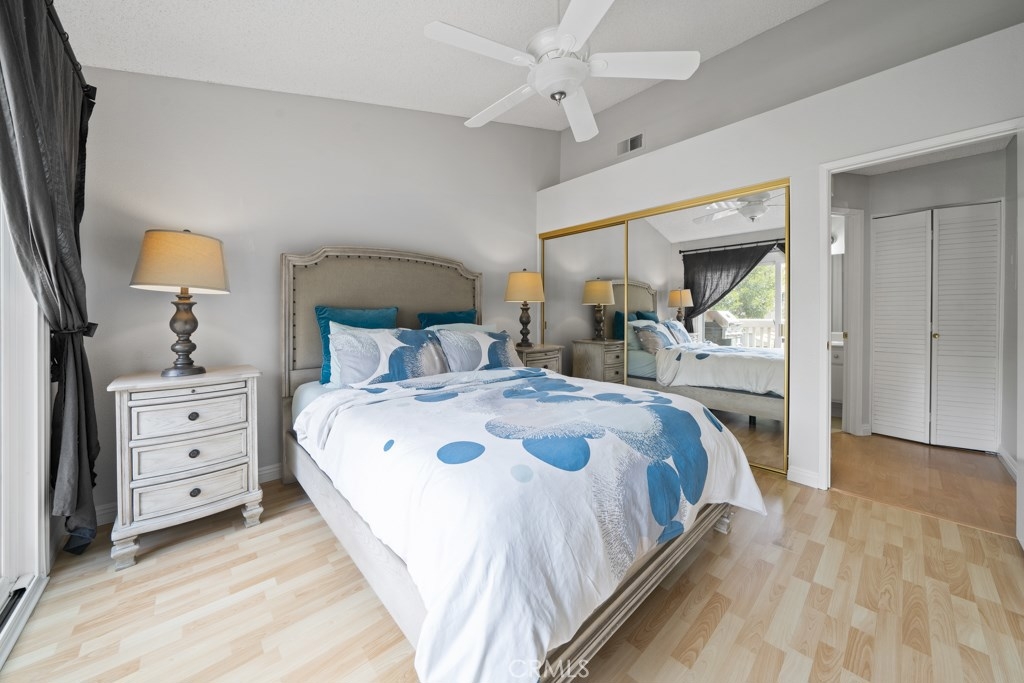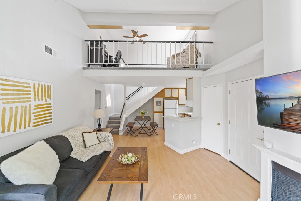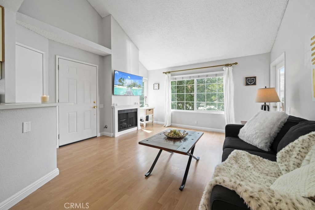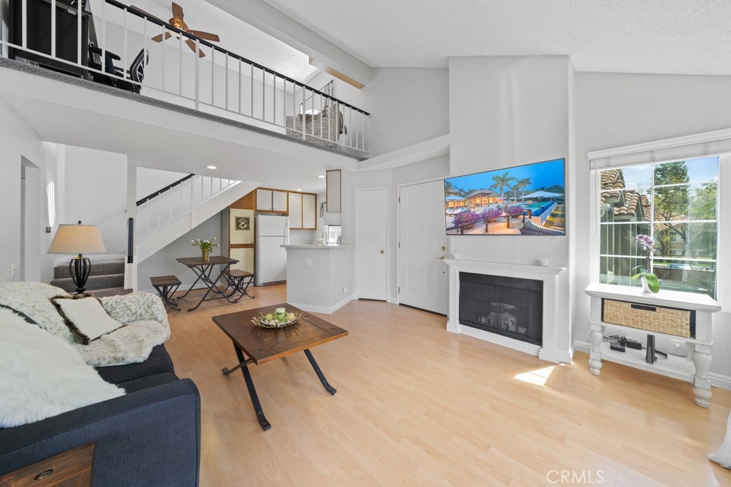 Premium pool-front location! This rare upper-end unit makes a striking impression with vaulted ceilings, fresh new paint entire home, and upgraded flooring, which shows pride of ownership that surpasses every home in this price range. Its spacious family room offers inspiring panoramic views, lots of natural light, a gas fireplace, and a balcony for you to enjoy barbecuing with friends. The open kitchen layout has easy access to the cozy dining area. The bedroom is a serene retreat to relax and recharge and opens to the balcony with peaceful views of the community greenbelt and pool. The skylight Loft is currently used as an office and can easily turn to a second bedroom. The convenient indoor washer and dryer and an expansive one-car garage with additional driveway parking enrich your life and your home’s value. The Nest air-condition control can be operated from your phone. This home is located within a highly acclaimed school district, just steps to the Concourse park, Whiting Ranch Wilderness Park, Live Oak Trail, and the 241 Hwy. The association has 2 pools, 2 spas, a tot lot and a clubhouse. No Mello Roose and Low Taxes. This move-in ready home is a rare opportunity at this price. *****Virtual Video Tour: https://youtu.be/II3LqSPCvR0 *****3D Virtual Tour: https://my.matterport.com/show/?m=MbWnR12Vbd7&brand=0