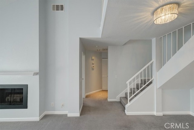 Awesome starter condo with two bedrooms, two full bathrooms, AND A LOFT!! The vaulted ceilings in every room make the home feel airy and spacious. The family room living space is nice and open with a large window and cozy fireplace. The kitchen has a brand new stove/oven appliance and granite counter tops. There is even room for a dining room set. The master bedroom is big enough for a king size bed and the en-suite bathroom has a beautiful countertop and walk-in shower. The secondary bedroom has recessed lighting and ample closet and storage space. The second bathroom is full size with a shower over tub combo. There is also the ever-important inside laundry hookups for convenience. The upstairs loft is perfect for a play room or home office and has track lighting and a skylight. Additionally, there is a view of the neighborhood and peek a boo view of the mountains from the patio. This home also comes with a one car garage located under the unit and up to two resident parking spots -- ample parking for residents and guests! The community has a tot-lot and community pool, and is a short walk from the park, basketball court, and highly rated elementary school. The surrounding area offers many gorgeous hiking trails and close to Foothill Ranch and Baker Ranch restaurants and shopping.