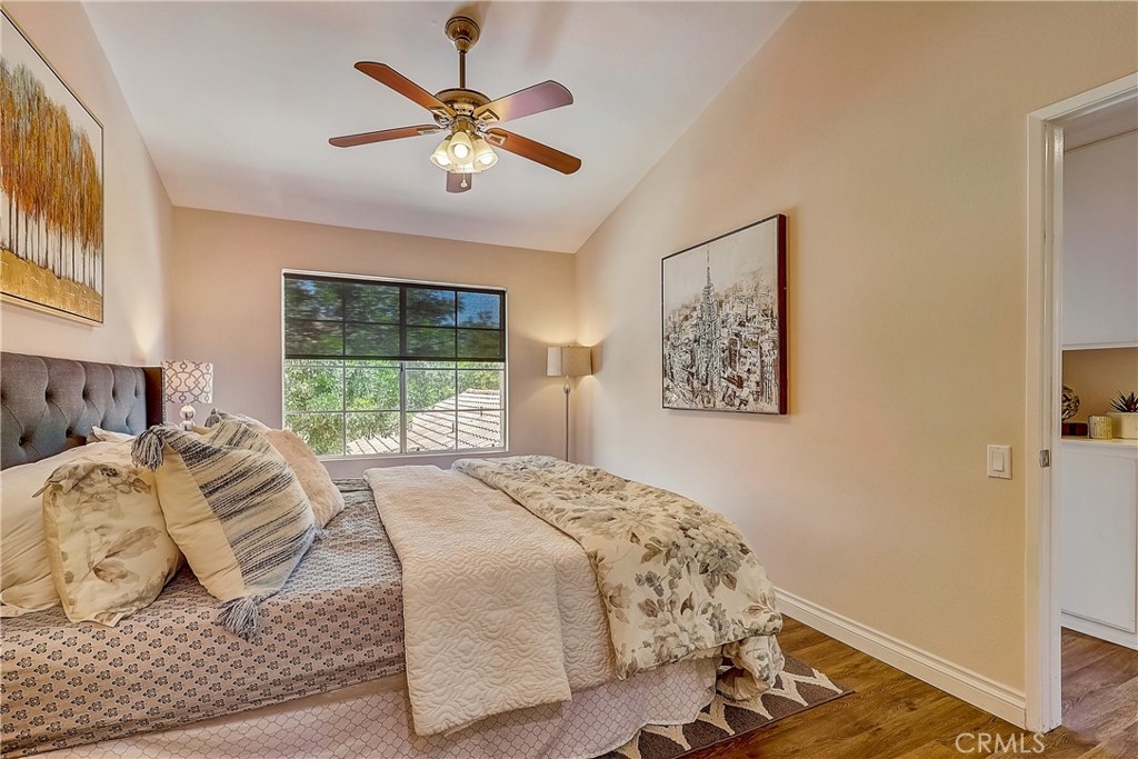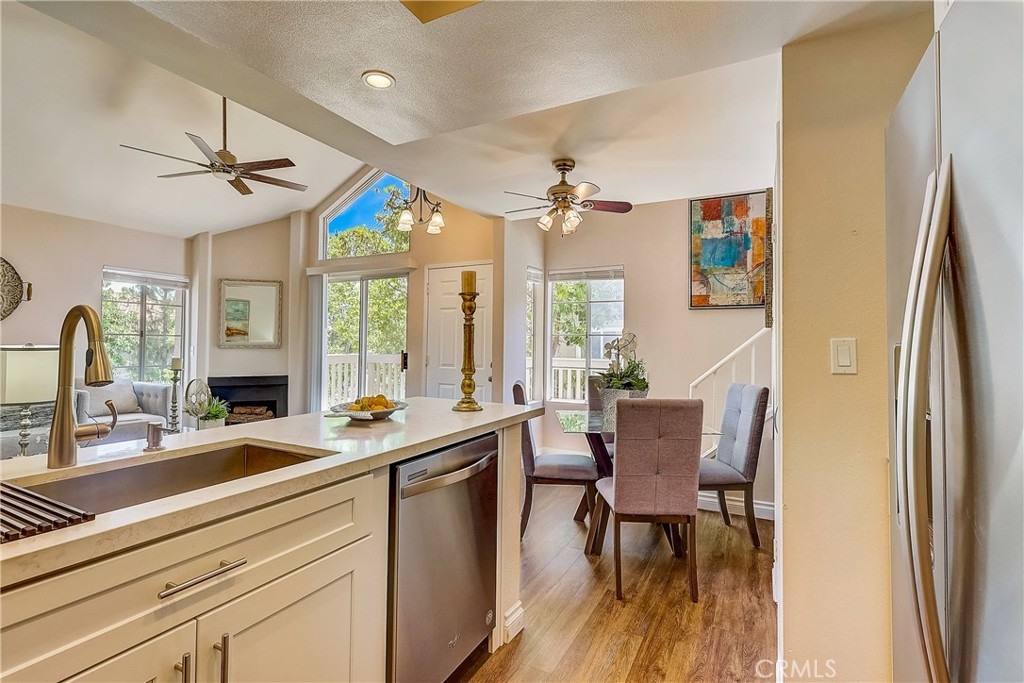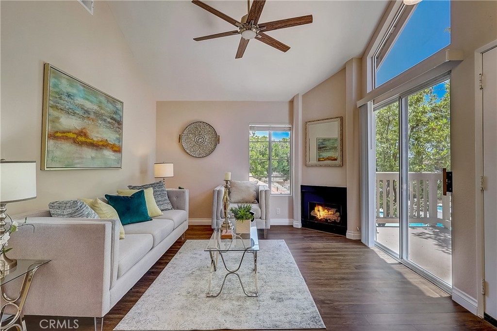 Exceptional living awaits in this beautifully remodeled and turn-key upper unit 2 bedroom 1.25 bath with a bonus loft in the private Canyon View neighborhood of Portola Hills. This condo is gorgeously appointed with wide plank luxury vinyl floors throughout, fresh designer paint, soaring ceilings, an abundance of natural light, and ceiling fans in every room. The gourmet kitchen includes white shaker cabinets, quartz counters, recessed lights, stainless steel appliances, and a basin sink to top it off. The two bedrooms are grand in size with larger slider closets and a newly remodeled full bath with stylish vanities and mirrors, an accent tiled shower tub combo, and new glass doors. The upstairs loft can easily serve as the much-needed home office space or guest quarters for visiting family and friends. Bonus features for this condo include a nest thermostat, central air cooling, inside laundry, privacy shades, a larger one-car garage, and extra storage space. This unit is conveniently located close to the community pool and spa while also being nestled in the Trabuco Canyon hills with breathtaking views of the Santa Ana Mountains, and close proximity to Whiting Ranch Wilderness Park, and Silverado Canyon, and Santiago Canyon. Endless hiking, biking trails, wonderful sunrises, and sunsets for the outdoor enthusiast await! Please don’t forget that you are a very short distance to Cooks Corner a legendary OC landmark serving up drinks, tasty food, and live music. FHA/VA approved, no Mello Roos, and extremely close to highly-rated Portola Hills Elementary School enables you to live the best life in this spectacular condo!
