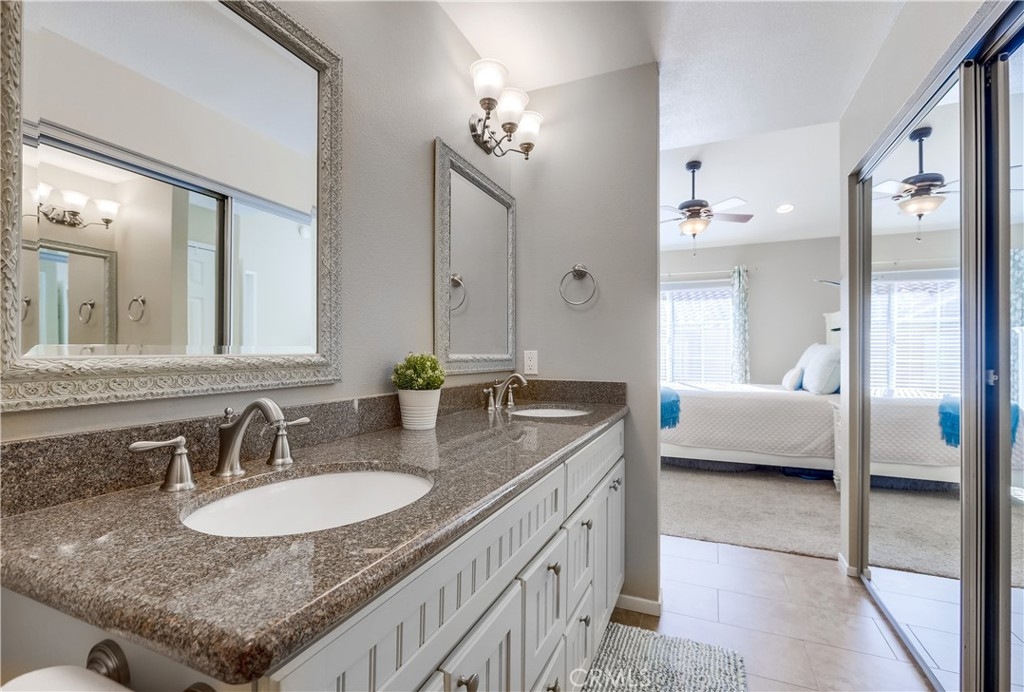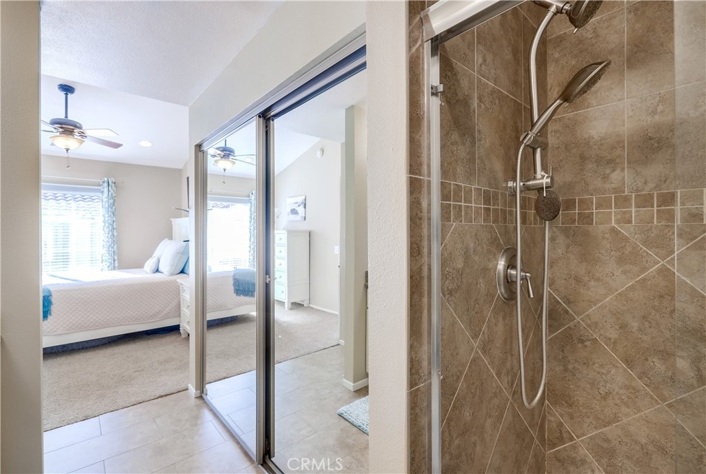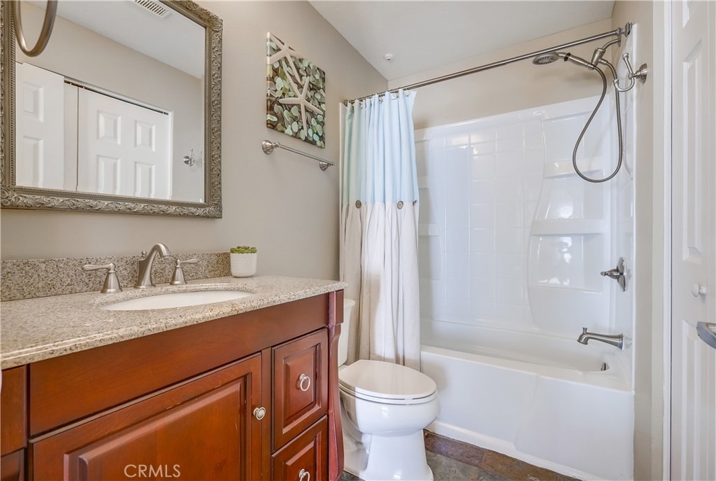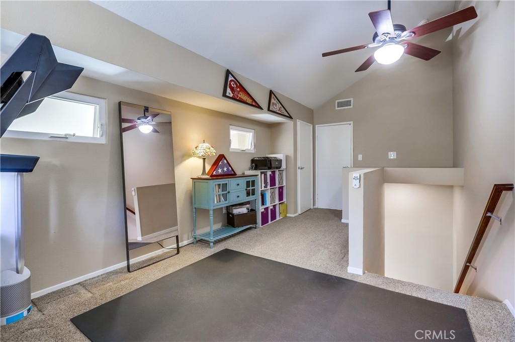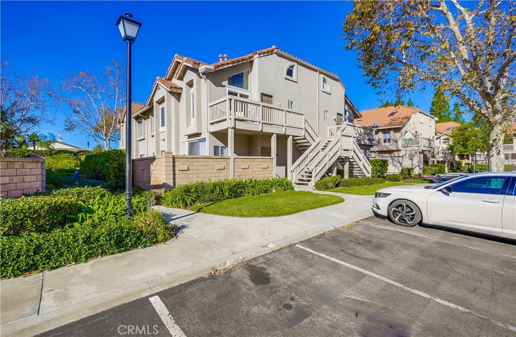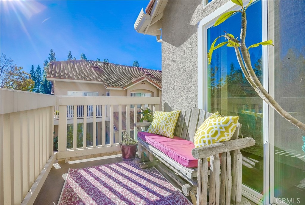 Gorgeous carriage end unit located in the desirable Canyon View West community nestled up to the foothills of Santiago Peak at the entrance of iconic Modjeska Canyon and Santiago Canyon, surrounded by the picturesque rolling hills of Whiting Ranch, providing a beautifully serene wildlife setting. The sunny front balcony entrance looking out towards the gorgeous hillsides creates an awesome first impression. Step inside and soak in the light filled living space with soaring vaulted ceilings and an open concept floor plan. The living room is filled with natural light and is blessed with a cozy fireplace and direct access to the front balcony through sliding doors, creating an ideal indoor-outdoor living space with scenic views. The handsome kitchen has been beautifully updated with exquisite cabinetry, granite countertops, a full glass tile backsplash, recessed lighting, updated faucet and fixtures, Stainless Steel appliances, extra storage cabinets with a coffee bar, and a highly prized breakfast bar, all open to the living room and dining room, perfect for entertaining friends and family. This well-designed floor plan includes 2 bedrooms and 2 bathrooms on the main level including a primary bedroom suite with vaulted ceilings, mirrored closet doors, an elegant private bathroom with updated granite topped dual vanity with custom cabinetry, framed vanity mirrors, updated fixtures and faucets, custom lighting, and a spacious step in shower. The main floor also includes a convenient inside laundry closet. Travel up the stairs to the bonus loft “Mezzanine” space which is perfect for a media room, den, rec room, gym, or home office, and also boasts additional storage areas. Fine features and recent improvements include a new front door, top of the line Tankless Water Heater, new A/C and new Furnace, and a new garbage disposal. This home also includes a 1 car detached garage. This well-maintained community has 2 community pools, a clubhouse, 2 spas, and a tot-lot playground. Endless outdoor activities located just steps away, including numerous hiking and biking trails throughout Whiting Ranch Wilderness, Concourse Park just a short stroll away, Santiago Equestrian center, Portola Park, and Portola Dog Park nearby. Close to Foothill Ranch Town Center with an abundance of shopping and dining and easy Toll Road access.
