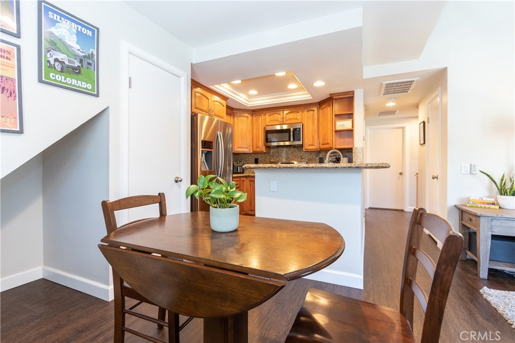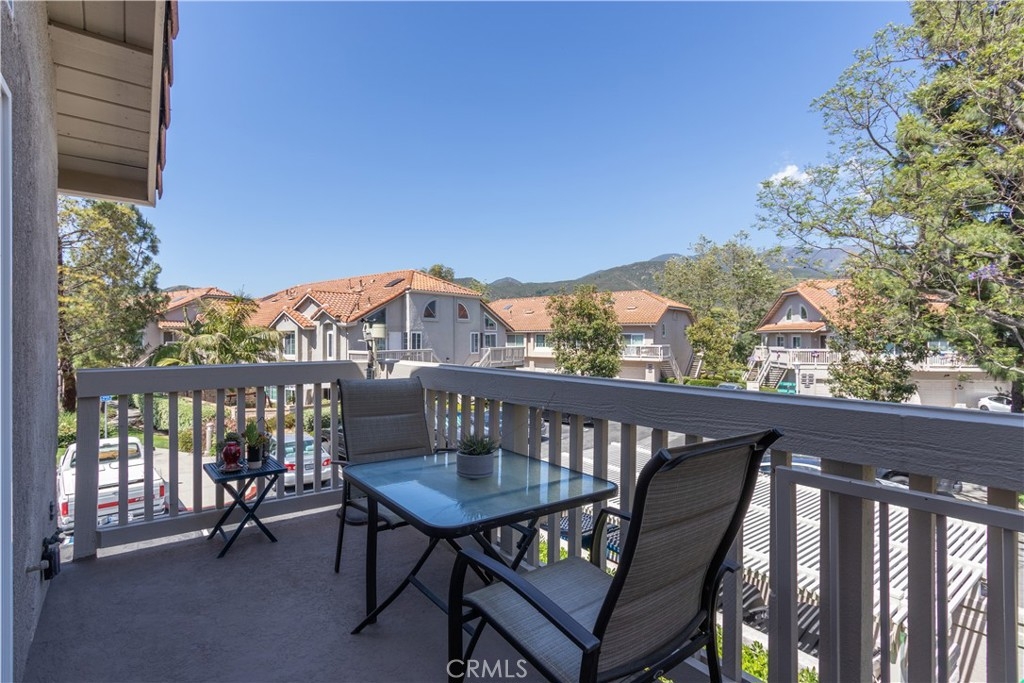Welcome to 28956 Canyon Lake Dr. in the highly coveted area of Portola Hills. As you enter this community you will immediately sense the serenity of the location. From the living room and from the deck the serenity continues as you look out on the relaxing view of the mountains. This 2 bedroom upstairs condominium boasts a large loft and incredibly large storage area behind that. The home is well appointed with wood look floors, light neutral paint, upgraded dual pane windows and recessed lights. Total open concept! Check out the remodeled kitchen with granite counters, breakfast bar, newer cabinets and stainless appliances. The 1&1/4 bath has also been upgraded. Enjoy outdoor living on the deck directly off the living room. One car attached garage. The upstairs loft is ideal for a home office guest space, craft area or homeschool/homework space. Come see and enjoy. HOA is well run and well funded. Conventional financing is readily available.