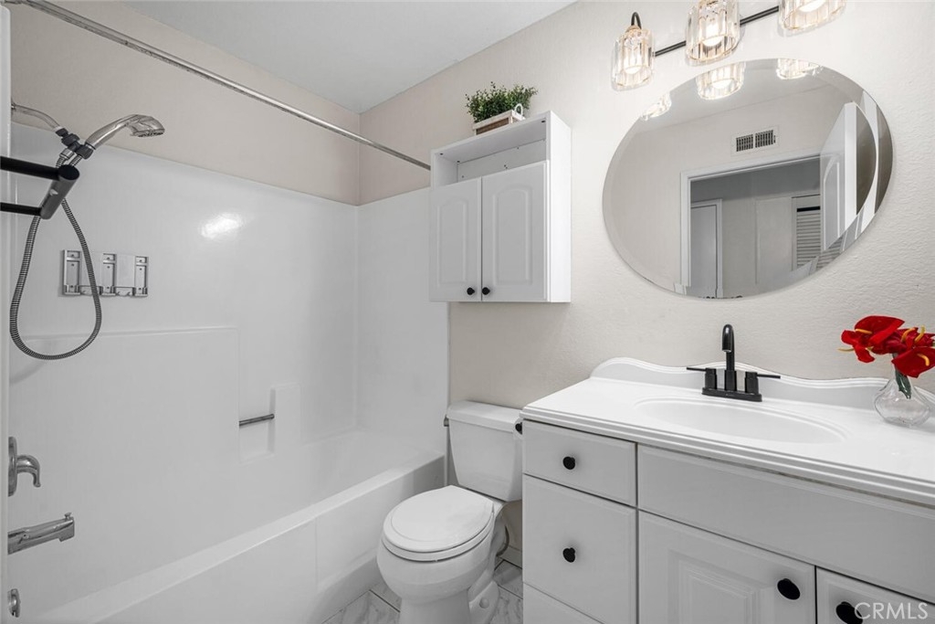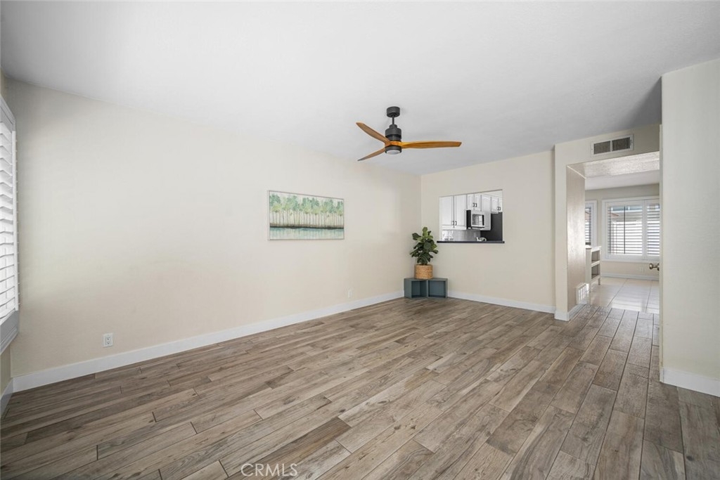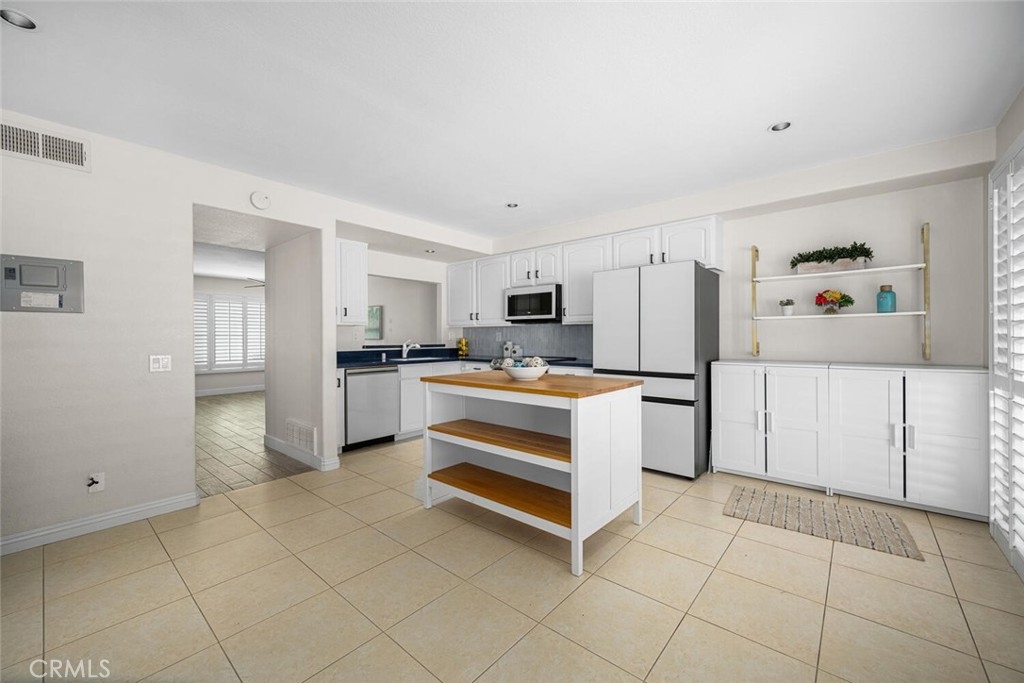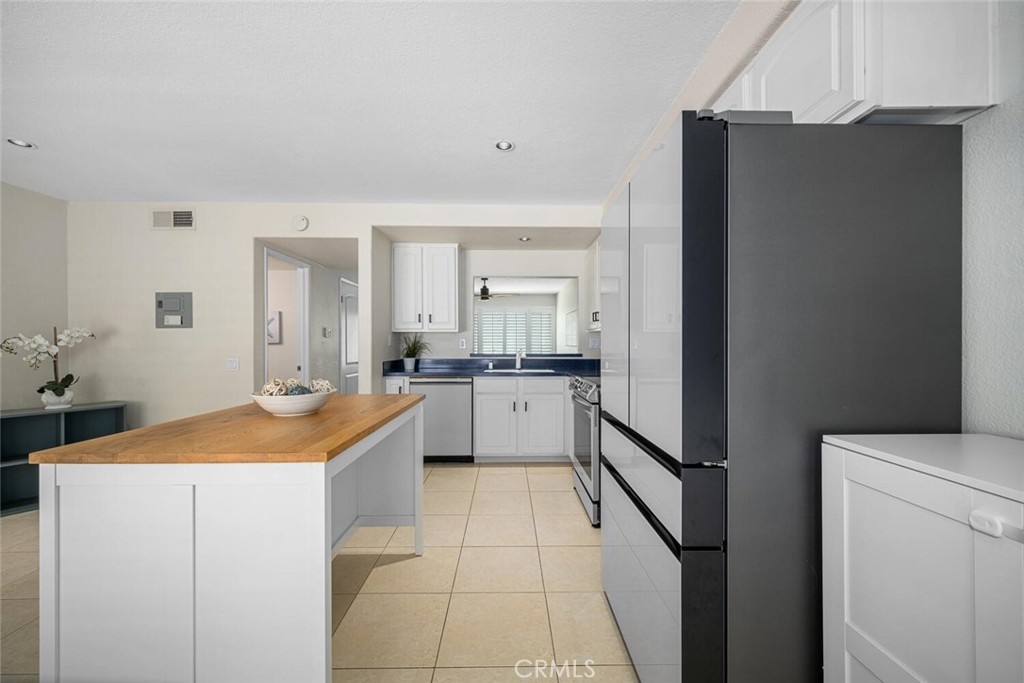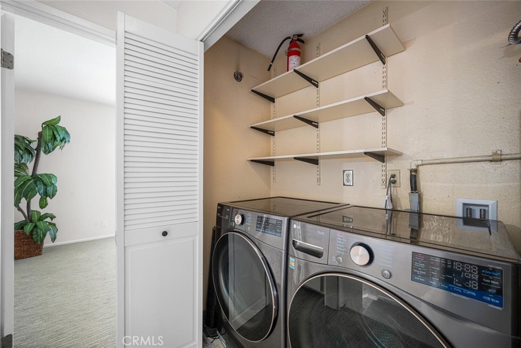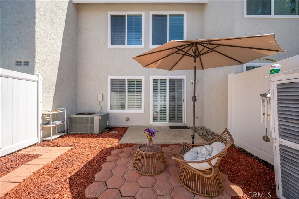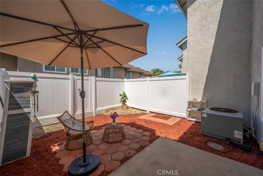 Located in the sought-after Cedar Glen community, this 2 story condo has a peaceful interior location in the complex as well as a very functional floor plan. The expansive living room has a beautiful and durable wood grain tile and sightlines to the large kitchen area. In the kitchen, the sleek tile backsplash compliments the white cabinetry that provide ample storage. No need to worry about buying appliances - This home comes complete with newer Samsung dishwasher, microwave, oven/range, refrigerator AND LG washer & dryer. The kitchen expands into a very versatile area, potentially a dining room or family room depending on preference. The thoughtful layout provides direct access from the kitchen area to the backyard patio. This home has a larger yard space than most in the complex, perfect for both entertaining or quiet relaxation. The newer white vinyl fencing provides ultimate privacy. Both bedrooms upstairs are oversized, easily fitting king size beds and plenty of furniture. Ceiling fans in the bedrooms and living room help keep it cool and fresh air circulating. The downstairs bathroom was remodeled and the full bathroom upstairs is conveniently situated with shower over tub and plenty of cabinet space. The upstairs laundry closet fits both a full size washer and dryer and is ideally located just a few steps away from both bedrooms. Cedar Glen offers its residents a number of amenities, including a beautiful pool/hot tub area as well as a clubhouse, barbeque and picnic area. It is close to freeways, shopping, nature trails, and the newer Lake Forest Sports Park. The HOA covers water, trash, sewer, and basic cable, keeping your monthly expenses down. Come see why this is one of the best deals in South OC!