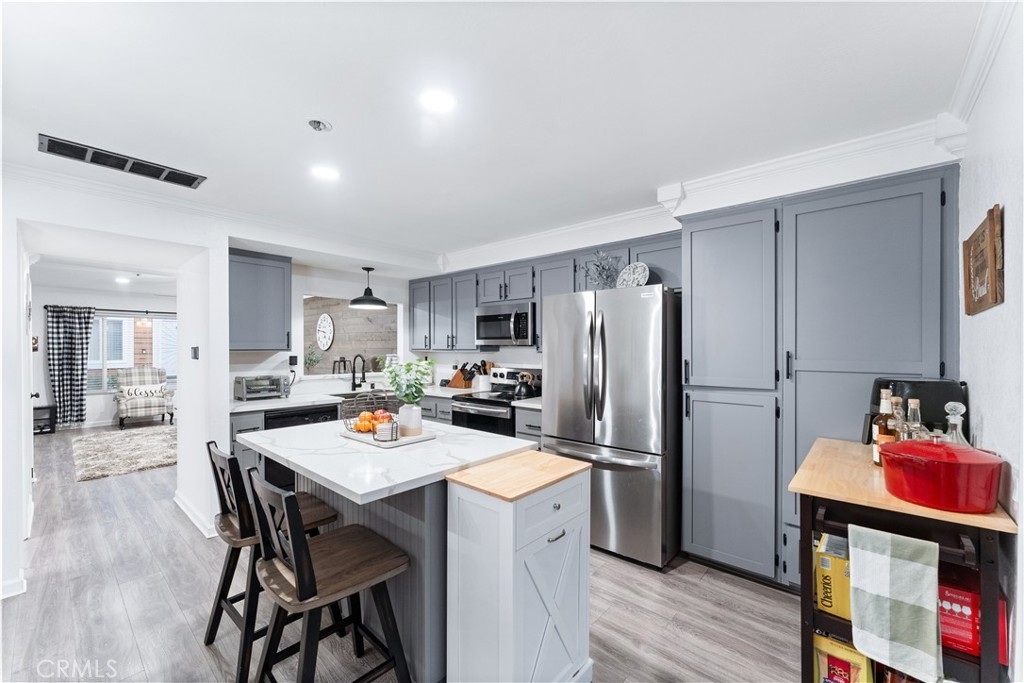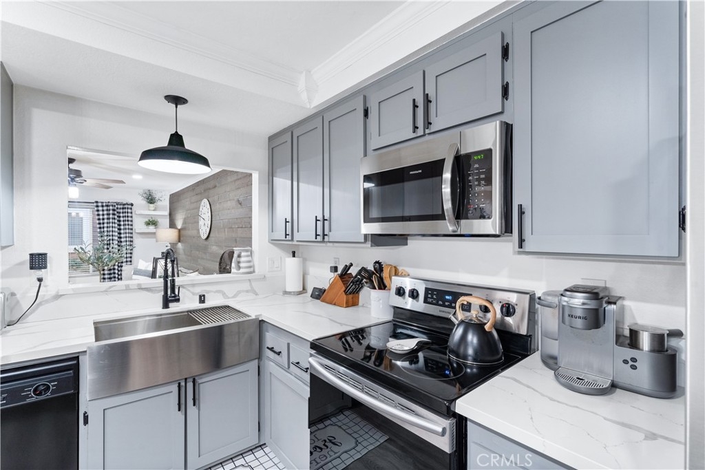 TURNKEY! Step into the most upgraded condo in the community—a beautifully renovated 2-bedroom, 1.5-bathroom home that blends modern design, thoughtful upgrades, and exceptional convenience. With no neighbors above or below, this charming home offers unmatched privacy. Inside, you'll find a host of high-end updates. New vinyl flooring runs throughout, complemented by fresh baseboards, crown molding, and stylish farmhouse accents, including a shiplap accent wall in the living room. The open-concept main floor features a custom-built kitchen island with a wine rack, a water filtration system, updated plumbing fixtures, a farmhouse sink, shaker-style cabinets with sleek black hardware, quartz countertops, and LED lighting, including recessed lights and farmhouse-style ceiling fans. Step through the dining area onto a private, enclosed outdoor patio with a gazebo—perfect for entertaining or relaxing with loved ones. Upstairs, both spacious bedrooms feature walk-in closets, offering plenty of storage. The upgraded bathrooms showcase trendy white and black hexagon tile, while the conveniently located indoor laundry area enhances everyday functionality. Additional improvements include double-pane windows, new interior doors, a recently re-piped PEX plumbing system, updated plumbing fixtures, a new water heater, and a brand-new AC unit for year-round comfort. Parking is a breeze with two assigned spaces—one covered carport with extra storage and one designated spot. The HOA also offers permits for additional parking, with three large guest parking lots providing plenty of extra space. The community is undergoing exterior updates, and this home is scheduled to be painted in a modern white to match the refreshed look of surrounding units. HOA dues cover water, trash, basic cable, exterior maintenance (including the roof), pest control, and access to fantastic amenities, including a rentable clubhouse, two pools, and two spas. Located just steps from Darrin Park, this home also offers easy access to outdoor activities. Centrally located near grocery stores, trendy restaurants, and highly-rated schools, this condo offers the perfect balance of style, comfort, and convenience. Don’t miss the opportunity to own this truly one-of-a-kind home!