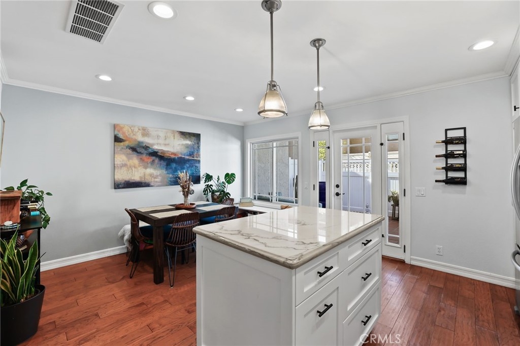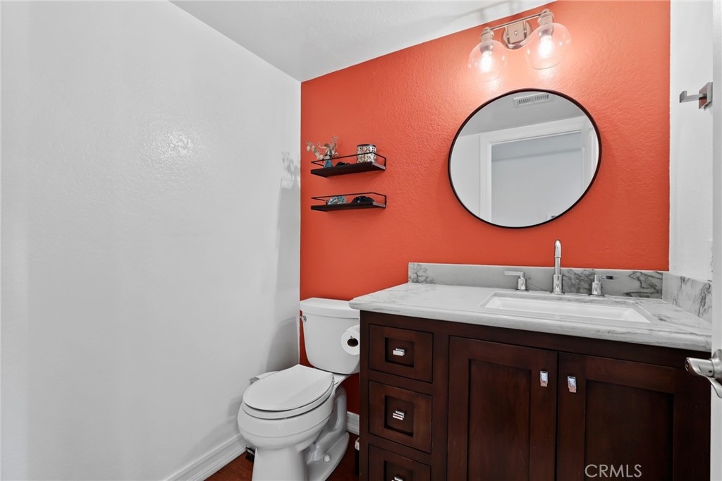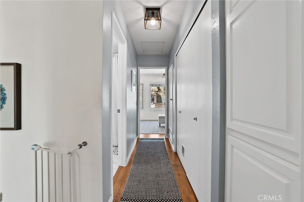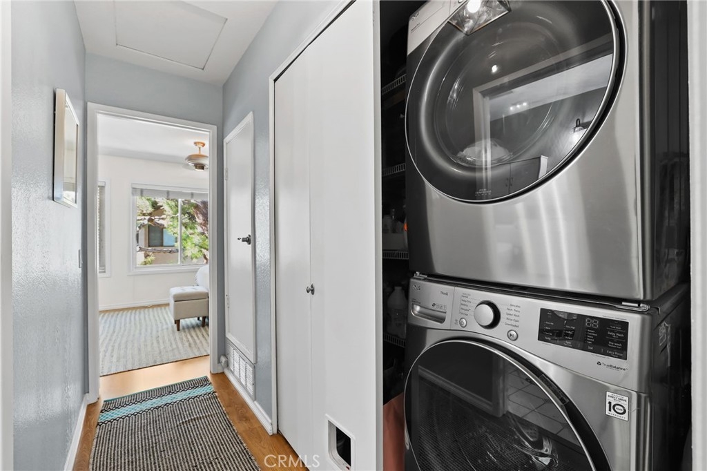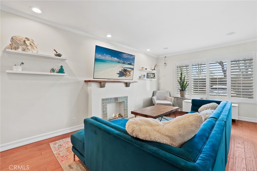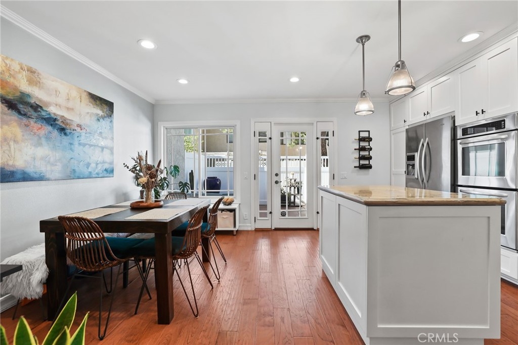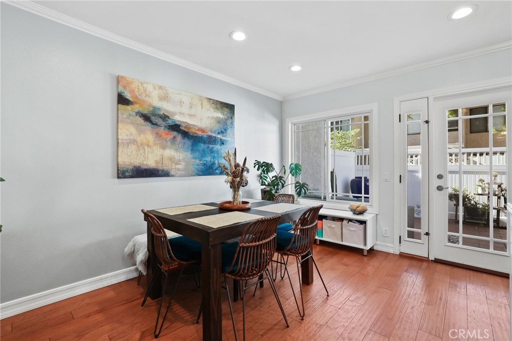 Charming Family Home with over $85,000 in Modern Upgrades! This beautifully remodeled townhome boasts an impressive array of features that blend style and comfort. It will be easy to relax and unwind as you enter the spacious family room, complete with a decorative faux fireplace and a charming wood mantel. Enjoy surround sound for movie nights and warm hardwood floors throughout. The oversized kitchen is sure to delight with a custom island illuminated by pendant lighting. The kitchen features sleek white self-closing cabinets with underlighting and decorative glass inserts, complemented by matte black hardware. Cook with ease using top-of-the-line KitchenAid stainless steel appliances, including a double oven and gas range, all set against a stylish subway tile backsplash and granite countertops. The eat-in nook offers a cozy space for casual meals, while an open niche seamlessly connects to the family room. The Primary bedroom features a built-out walk-in closet and a ceiling fan for added comfort. The wood laminate flooring adds a touch of elegance, making this space a perfect sanctuary. The versatile secondary bedroom offers an extra-deep closet for ample storage, a ceiling fan, and cozy shutters, all enhanced by wood laminate flooring. A full bathroom nearby features a tiled shower with a tub, a shaker design vanity, and a granite countertop with an undermount sink. Step outside your private outdoor oasis patio surrounded by a stylish vinyl fence and featuring beautiful tile work. Relax by the soothing water fountain or take advantage of the plumbed gas line for outdoor cooking and entertaining. This home is packed with thoughtful upgrades, including a stunning stained glass insert in the front door, crown molding, recessed LED lighting, and a tankless water heater. Enjoy the convenience of an inside laundry setup with storage, and a carpeted staircase adorned with decorative wrought iron rails. With a carport that includes storage and an additional parking space, this home is perfectly positioned across from the beautifully redone Darrin Park and close to the popular Lake Forest Sports Park and Recreation Center. Centrally located near Irvine Spectrum, The Great Park, Toll Roads, freeways, shopping centers and more. Hurry to see, this one won't last!