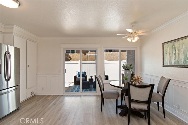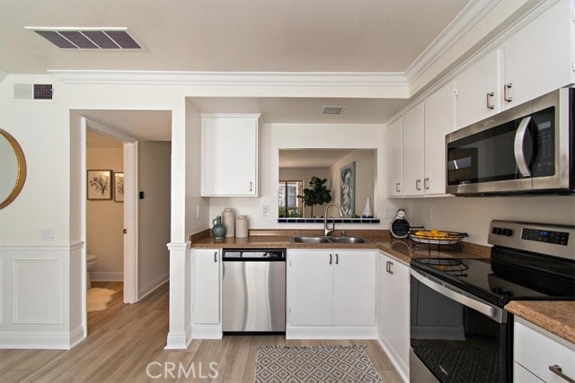 Welcome to the popular community of Cedar Glen. This home has been remodeled throughout. You will love the beautiful six foot plank flooring downstairs and neutral carpeting upstairs. Beautiful wainscoting and crown molding in this bright and cheery kitchen with room for a large dining table to seat several guests. New stainless appliances complete the look of a modern kitchen with the charm afforded by the wainscoting painted bright white that make it pop! The cabinets offer plenty of storage with pull out stainless drawers for easy access. Stainless refrigerator included. Kitchen windows are newer double pain and afford a lot of light. Two spacious bedrooms upstairs with walk in closets. Full size laundry closet upstairs, Washer and Dryer included. This unit has all new piping plus a smart Thermostat and RING door bell. The patio is surrounded by new white Vinyl fencing, to complete the new look. You can grow a whole linear garden and the white back drop from the fence really shows it at it's best. The home has one carport with storage closet and one assigned parking space. Many community amenities, beautiful large pool and two spas. There is a club house that can be used for special events. Located next to park with children's play ground, trails, shopping, restaurants and entertainment. Close to I-5 frwy. Check Open House schedule. This wont last long.