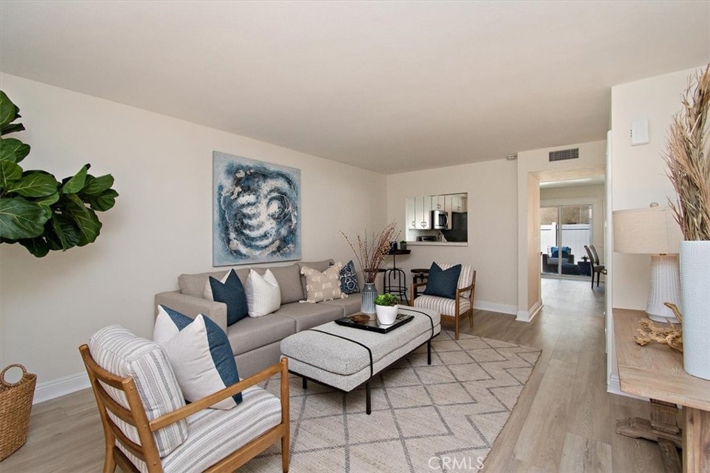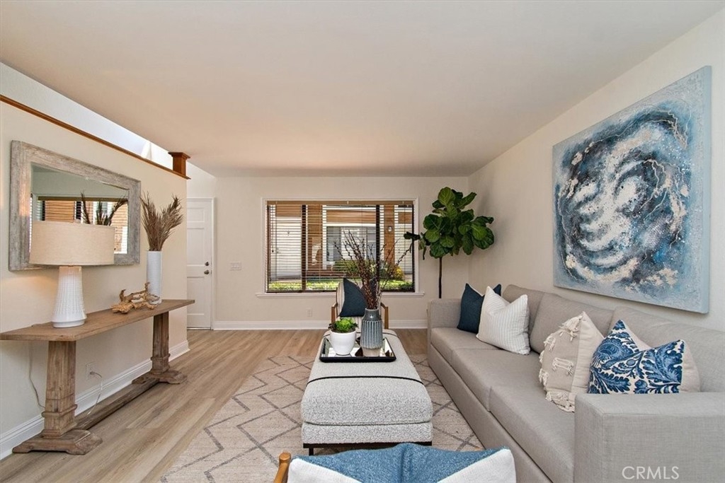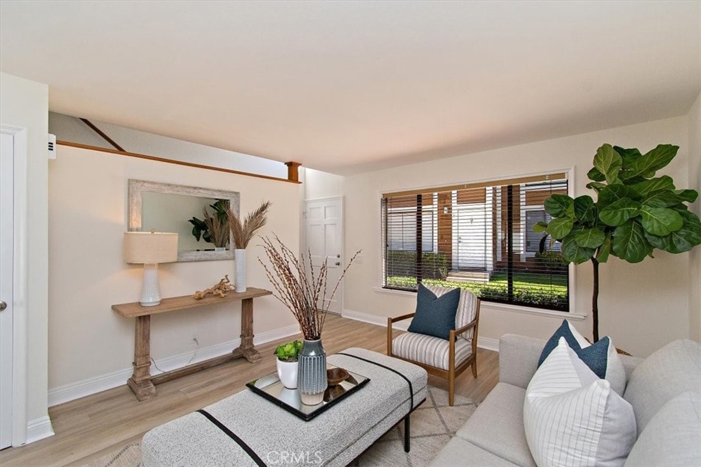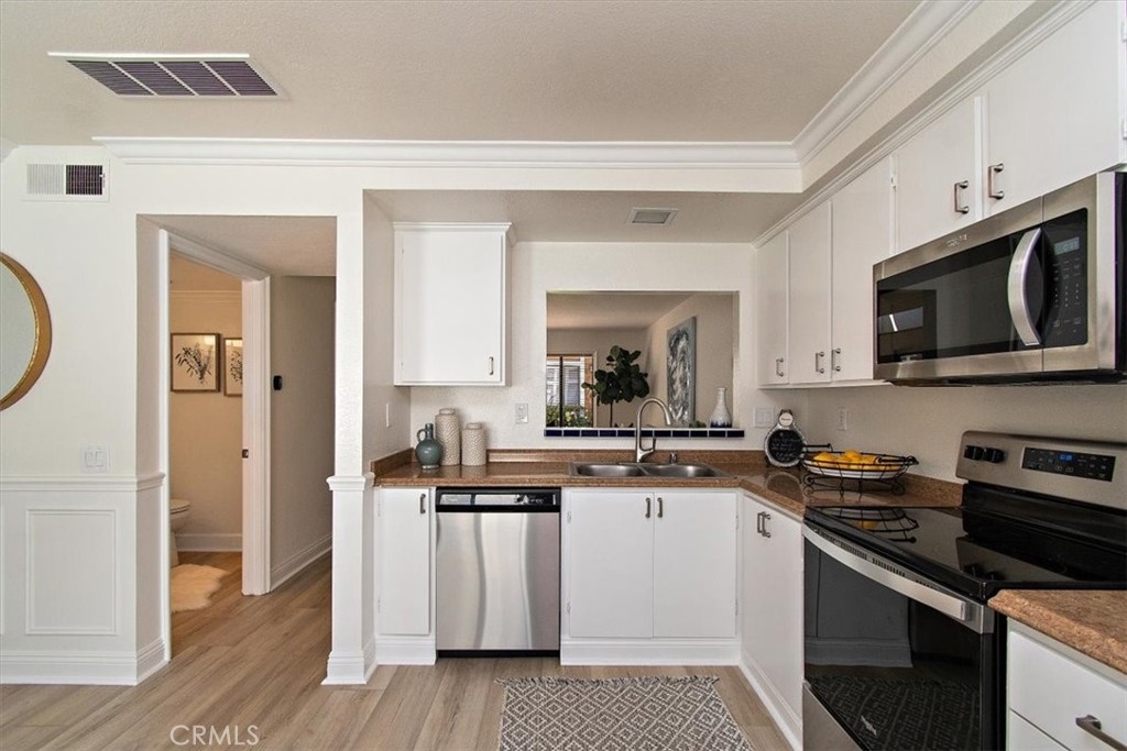 Welcome to the popular community of Cedar Glen. This home has been remodeled throughout. You will love the beautiful six foot plank flooring downstairs and neutral carpeting upstairs. Beautiful wainscoting and crown molding in this bright and cheery kitchen with room for a large dining table to seat several guests. New stainless appliances complete the look of a modern kitchen with the charm afforded by the wainscoting painted bright white that make it pop! The cabinets offer plenty of storage with pull out stainless drawers for easy access. Stainless refrigerator included. Kitchen windows are newer double pain and afford a lot of light. Two spacious bedrooms upstairs with walk in closets. Full size laundry closet upstairs, Washer and Dryer included. This unit has all new piping plus a smart Thermostat and RING door bell. The patio is surrounded by new white Vinyl fencing, to complete the new look. You can grow a whole linear garden and the white back drop from the fence really shows it at it's best. The home has one carport with storage closet and one assigned parking space. Many community amenities, beautiful large pool and two spas. There is a club house that can be used for special events. Located next to park with children's play ground, trails, shopping, restaurants and entertainment. Close to I-5 frwy. Check Open House schedule. This wont last long.