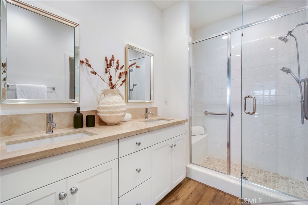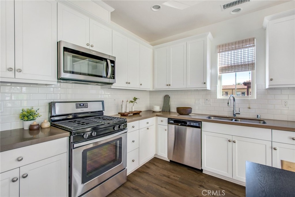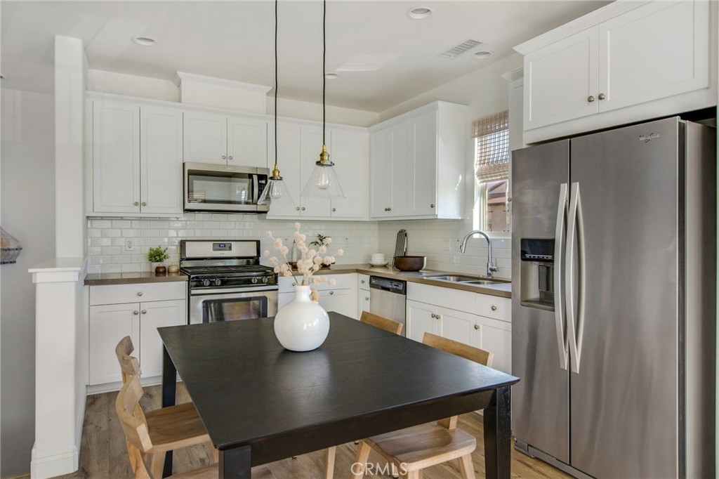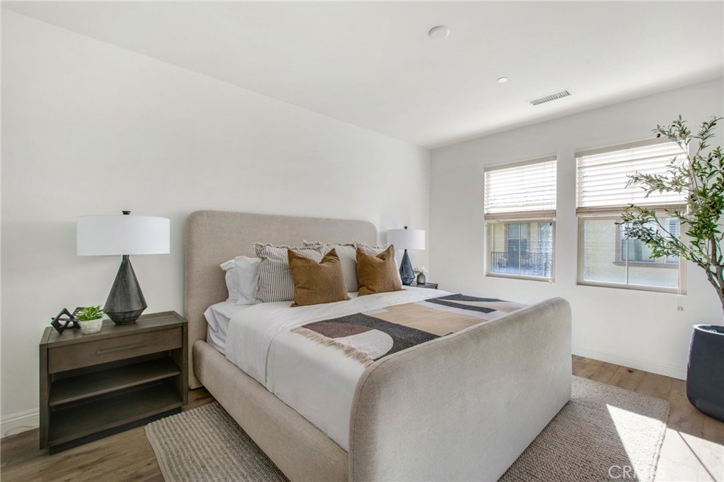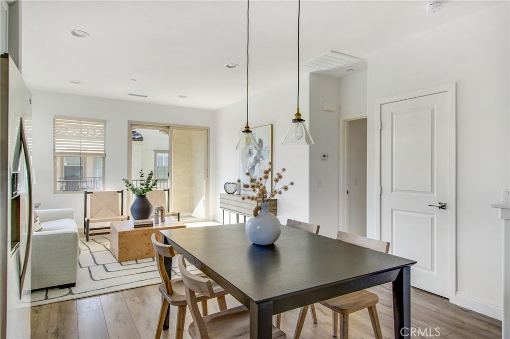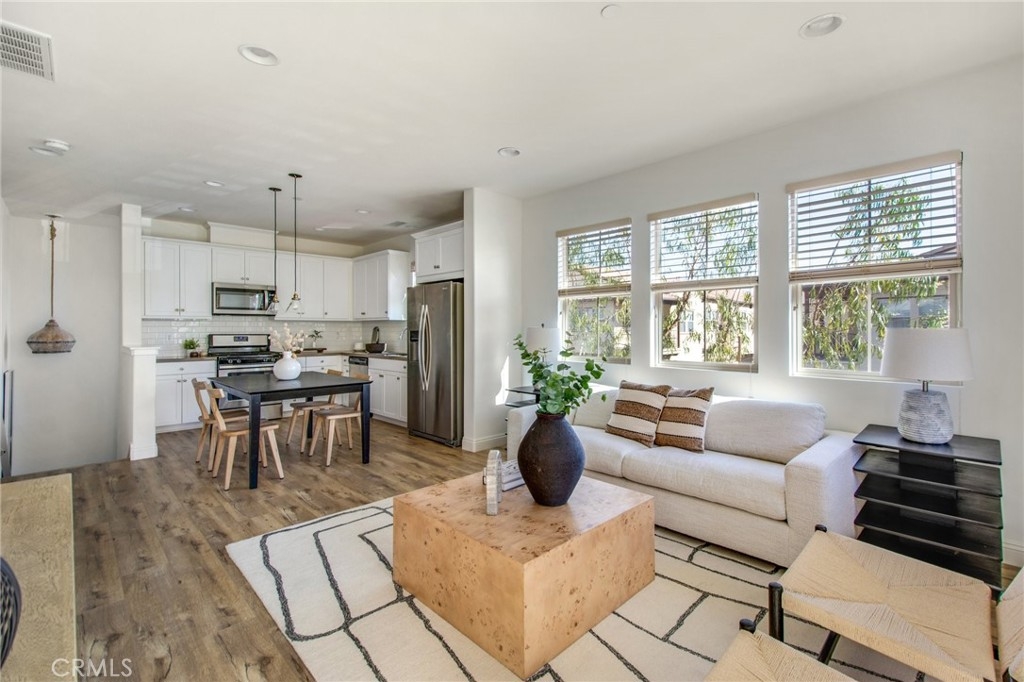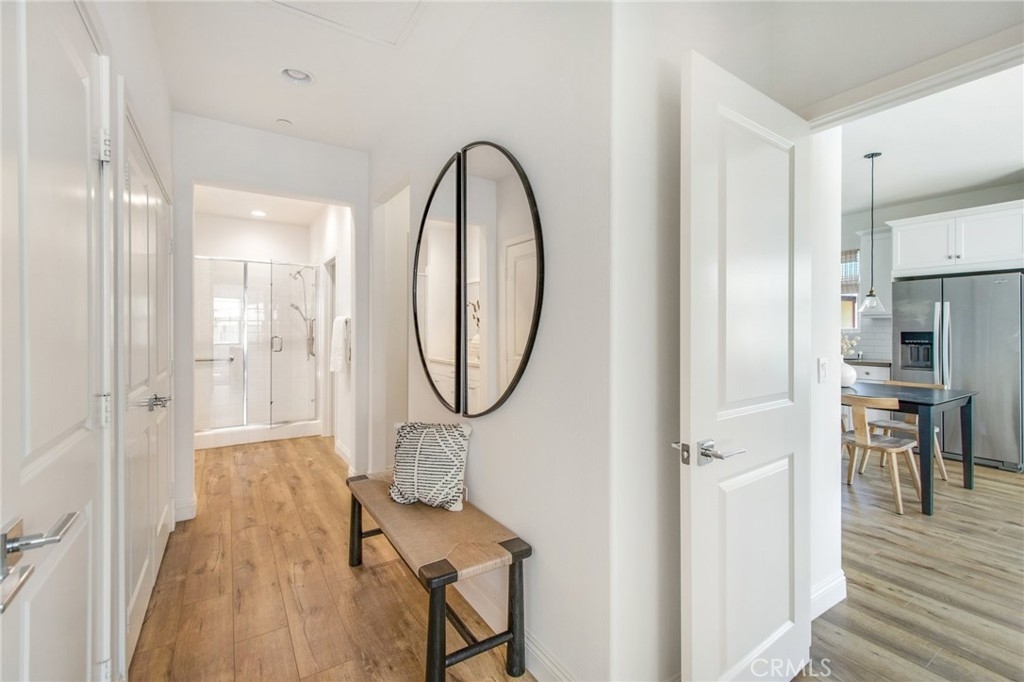 Charming condo, built in 2015, and located in the highly sought after gated community of El Paseo. Prime end-unit location, with direct access to the attached garage. Spacious open floorplan with Abundant natural light, features the living space on one level. Nicely upgraded home with wood flooring throughout, fresh paint, kitchen and bathroom are tastefully appointed. Kitchen features stainless appliances, subway tile backsplash, upgraded countertops, and large pantry. The primary suite is beautifully designed with great closet space, nicely configured bath, and a spacious bedroom. Interior laundry with washer and dryer included. Recessed lighting throughout the property. Tankless water heater in the garage.