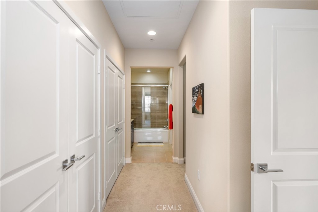 Luxurious one-bedroom one-bath turnkey townhome with an attached garage located in the wonderful hillside community of Foothill Ranch. Enjoy living in the highly sought-after gated RESORT STYLE, Spanish- inspired village of El Paseo, with low HOA and NO MELLOS ROOS! This two-level townhouse style residence is wonderfully bright and open, with tons of large windows that bring in natural infused light. The front door gives you access to an open foyer with garage access, a large closet and staircase that leads to the open concept living area with a beautiful modern kitchen. The amazing kitchen boasts granite countertops, glass tiled backsplash, rich wood cabinetry, stainless steel appliances, and luxury vinyl flooring. The kitchen and dining area overlook the spacious living room which opens to the balcony. The large primary suite with custom bathroom has dual vanities, custom tile enclosure, two separate closets, and convenient inside laundry. Custom upgrades include, electric vehicle hookup level 2, tankless hot water heater, Ecobee smart thermostat, recessed lighting, upgraded baseboards, wood blinds, ceiling fans, and Epoxy flooring in the garage. Enjoy the resort style amenities of El Paseo which include: pool, spa, playground area, and clubhouse. Just walking distance away is entertainment, restaurants, grocery stores, department stores, hiking trails, and mountain biking trails.