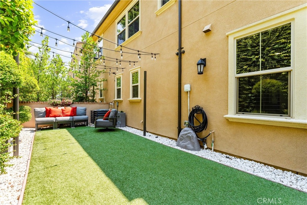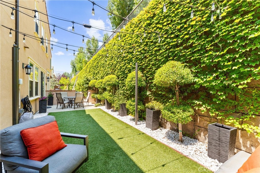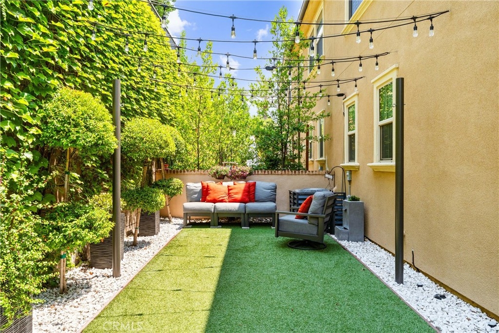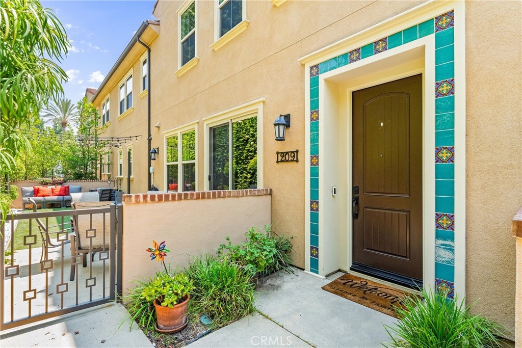 Extremely private location! NO Mello Roos! Low HOA! Luxurious END UNIT with PRIVATE ENCLOSED YARD. Enjoy Plantation Shutters, Extra Recessed ENERGY EFFICIENT LED Lighting throughout, Dimmer Switches, beautiful & durable Wood-Look Tile floors downstairs, waterproof Vinyl Wood flooring upstairs, Artificial Grass Yard & SECURITY SYSTEM. It’s the most desired floorplan of El Paseo, featuring an open concept great room, spacious upstairs laundry room. Large kitchen showcases a huge island with breakfast bar, upgraded farmhouse sink, quartz countertops, marble backsplash. Wake up in the primary bedroom to a serene view of palm trees, bathroom with dual sinks, deep soaking tub, separate shower and generous walk-in closet. The backyard’s privacy wall helps keep the home cool with shade & saves energy during the hot months of the year. The home is not visible to pedestrians from the street! It’s a very quiet location close to Portola Parkway. This breathtaking Spanish-style community setting offers a Cabana Clubhouse for parties, playground, great lawn, pool with lap lanes, poolside firepit & BBQ with picnic areas. Centrally located only a short distance away from Target, Ralph's, movie theaters, shopping, an extensive variety of dining options & Foothill Ranch Elementary School. All 3 assigned SCHOOLS are some of the HIGHEST RATED in the area. Must see