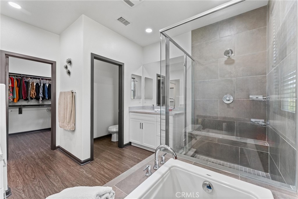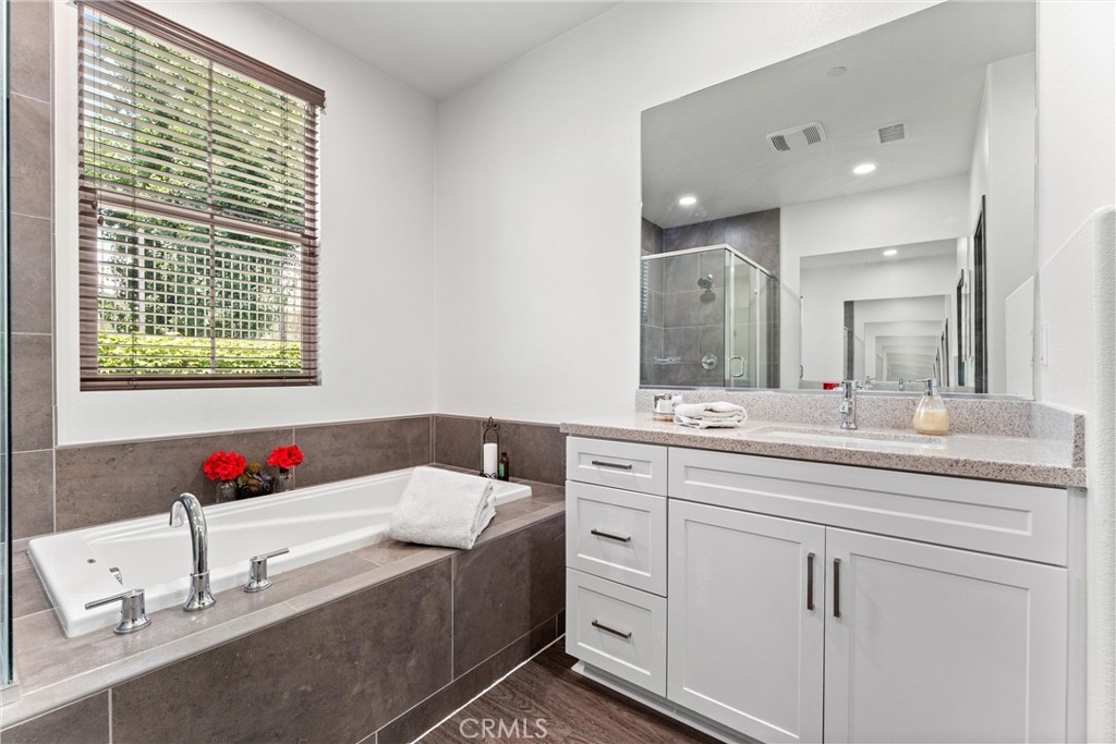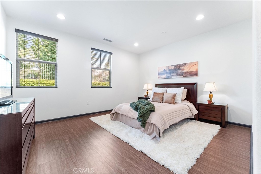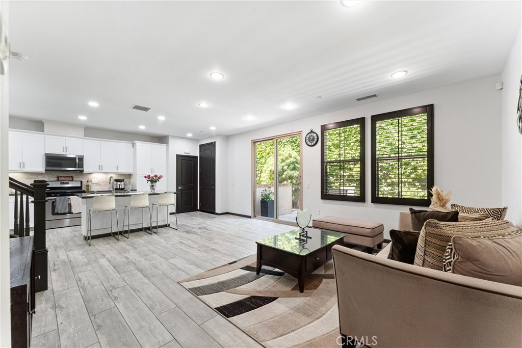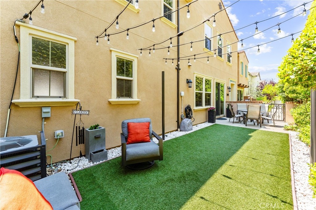 Extremely private location! NO Mello Roos! Low HOA! Luxurious END UNIT with PRIVATE ENCLOSED YARD. Enjoy Plantation Shutters, Extra Recessed ENERGY EFFICIENT LED Lighting throughout, Dimmer Switches, beautiful & durable Wood-Look Tile floors downstairs, waterproof Vinyl Wood flooring upstairs, Artificial Grass Yard & SECURITY SYSTEM. It’s the most desired floorplan of El Paseo, featuring an open concept great room, spacious upstairs laundry room. Large kitchen showcases a huge island with breakfast bar, upgraded farmhouse sink, quartz countertops, marble backsplash. Wake up in the primary bedroom to a serene view of palm trees, bathroom with dual sinks, deep soaking tub, separate shower and generous walk-in closet. The backyard’s privacy wall helps keep the home cool with shade & saves energy during the hot months of the year. The home is not visible to pedestrians from the street! It’s a very quiet location close to Portola Parkway. This breathtaking Spanish-style community setting offers a Cabana Clubhouse for parties, playground, great lawn, pool with lap lanes, poolside firepit & BBQ with picnic areas. Centrally located only a short distance away from Target, Ralph's, movie theaters, shopping, an extensive variety of dining options & Foothill Ranch Elementary School. All 3 assigned SCHOOLS are some of the HIGHEST RATED in the area. Must see