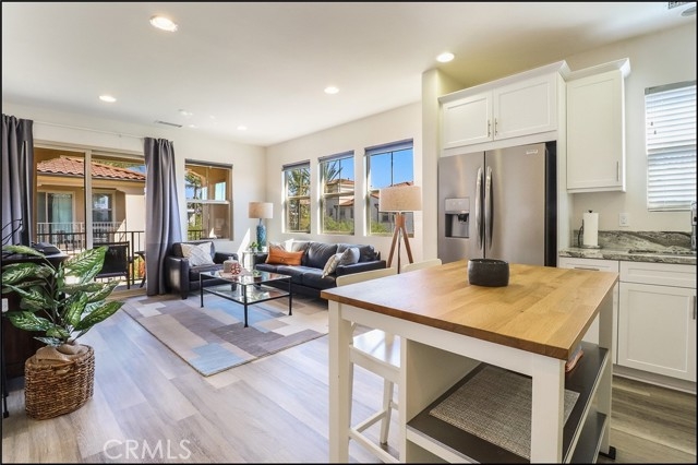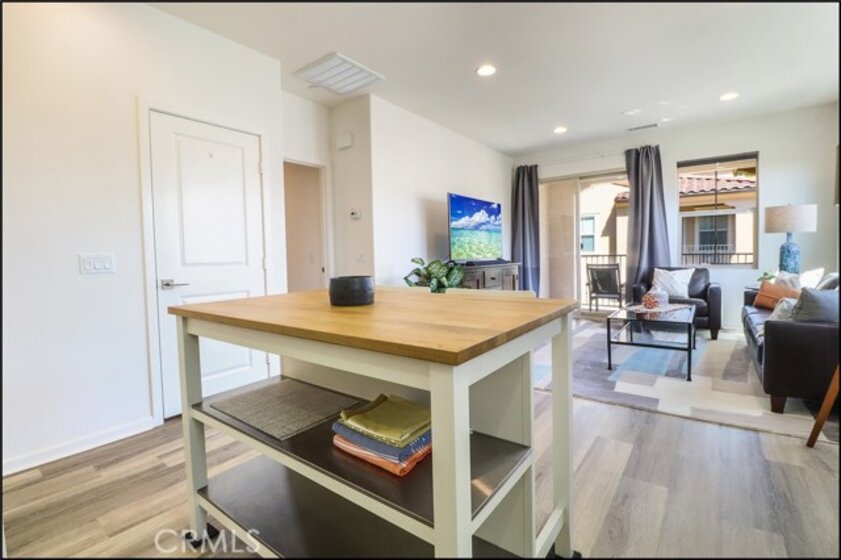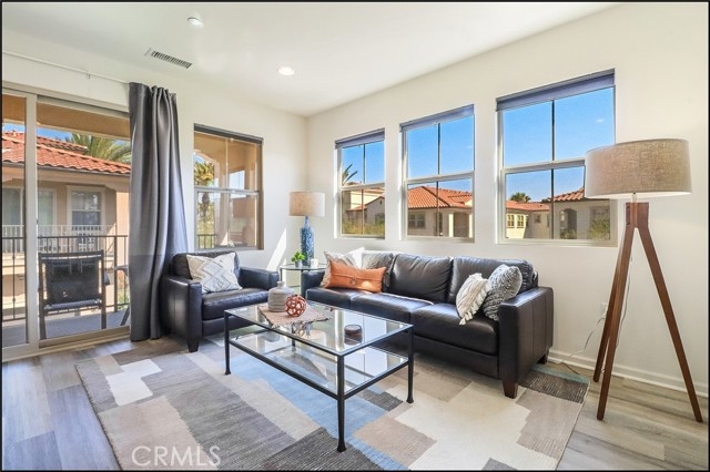 AWESOME PROPERTY BUILT IN 2016 WITH UPGRADES THROUGHOUT IN THE HIGHLY SOUGHT AFTER AND GATED EL PASEO COMMUNITY IN FOOTHILL RANCH! Prime end unit location with direct access to the attached garage, two-level residence with lots of windows to pour in plenty of natural light, private entry with large foyer, large closet, tile flooring and multi-tiered staircase leading to the spacious floor plan and main living areas which is designed as a great room opens to the stunning kitchen with designer stone countertops, stainless steel appliances including refrigerator, designer white shaker style cabinets with pull-out drawers, large pantry and designer faucet. This amazing property boasting approximately 953 sq.ft of luxury living space also features a spacious master bedroom with designer ceiling fan light fixture, conveniently located inside laundry with washer and dryer included, large wall-to wall closet with custom built-in desk and a spacious bathroom featuring a large vanity with designer stone countertop, dual sinks, tub & shower with glass enclosure and upgraded fixtures. Upgraded flooring and baseboards, designer style panel doors with upgraded chrome hardware, recessed LED lighting, ample linen cabinets, EV charging station in the garage, tankless water heater and so much more. There is also a large patio deck for your outdoor enjoyment, resort style community pool area "The Cabana", clubhouse, playground, BBQ and dining areas and a super low HOA dues of $251/month! Easy toll road (241) and freeway access (via Bake parkway), excellent proximity to nearby shopping and Irvine Spectrum with shops, restaurants and entertainment, highly sought after schools and nearby hiking, biking and nature trails!