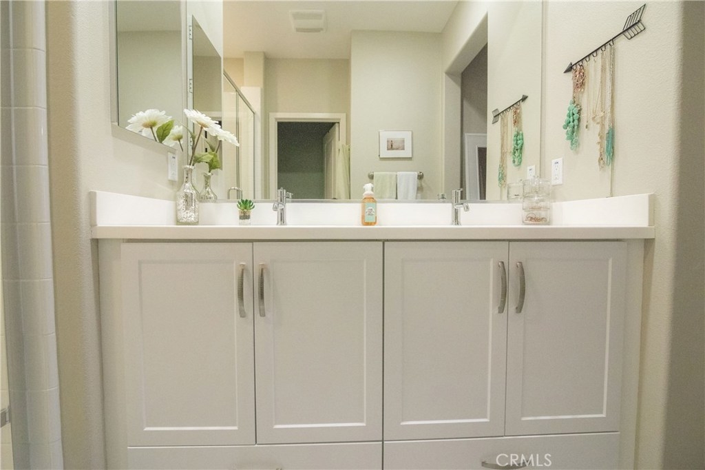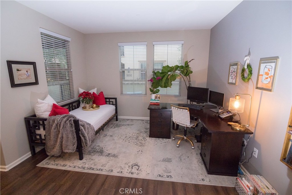 Property is below market value from the last comp that sold with this floor plan. Best gated community in Foothill Ranch! More than $20,000 in upgrades. The elegance of this beautiful home has a livable floor plan, once you enter on level one with a spacious den/office/ possible bedroom with beautiful new wood back laminate floors. Upstairs to the main level is a truly luxurious kitchen that features modern and sleek wood flooring, granite counter tops, large island with bar seating and spacious living room floor that just flows to the dining area with sliding doors to the covered deck/balcony perfect for relaxation. Down the hallway, the Master Suite features plush carpet, high ceilings, a walk-in closet, and an en suite bathroom with dual sinks and walk-in shower. The secondary bedroom it's big, steps away from the hallway bathroom with a tub. Convenient main level laundry room with shelving, stainless and energy efficient appliances, dimmer lights in most rooms, attached 2-car tandem garage with plenty of space for storage. El Paseo Gated Community, The cabana Clubhouse is perfect for bday parties or gatherings, great playground for children, picnic areas and heated pool. Low HOA dues. Cat five cable wired. This home is walking distance from Foothill Ranch Elementary School, Public Library, restaurants, movie theater, food court, medical facilities, grocery chains, cleaners, etc. Very close to the 241 FWY, Whithin Ranch great for hiking.