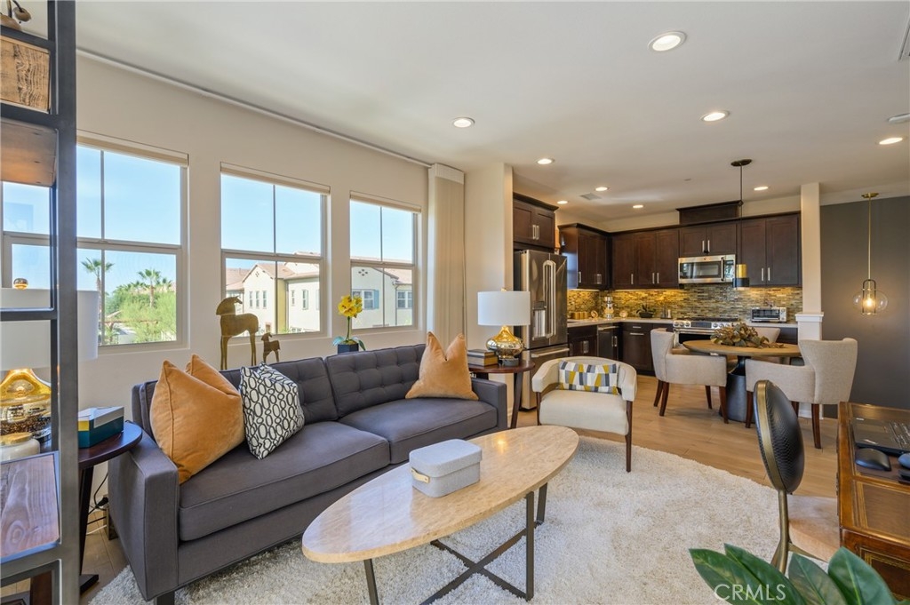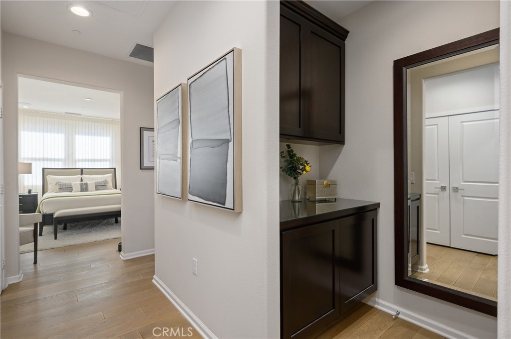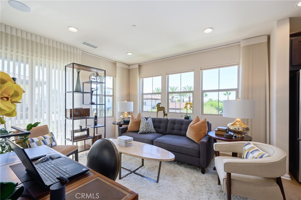 Live a LUXURIOUS LIFE in this ABSOLUTELY GORGEOUS, HIGHLY UPGRADED condo in one of the most desired locations ACROSS FROM POOL AND PARK. It offers a beautiful floor plan with CONVENIENT bedroom, full bath and living area ALL ON THE SAME LEVEL AND NO MELLO-ROOS. Live a luxurious life in the SPACIOUS condo with MANY UPGRADES AND CUSTOMIZATION. Great room with custom stained “RICHARD MARSHALL” SOLID WHITE OAKWOOD FLOORS, Custom TV MOUNT wired to sound system, Custom Hunter Douglas Alustra Luminette window treatments plus Hunter Douglas POWERVIEW DUETTE ROOM DARKENING PROGRAMMABLE SHADES, and a SLIDING GLASS DOOR that leads to your BEAUTIFUL BALCONY with LED light fixture and programmable “Café lights” with remote/timer. Enjoy cooking in your GOURMET KITCHEN with SEAMLESS “SILESTONE” QUARTZ countertops, STAINLESS STEEL appliances including DOUBLE OVEN, full GLASS TILE backsplash with custom painted switch plates, REVERSE OSMOSIS WITH SINK DISPENSER, STAINLESS STEEL “BLANCO” SINGLE SINK, upgraded LED UNDER CABINET LIGHTS and PENDANT LIGHT in dining area. Relax in the GRAND MASTER SUITE offering DUAL VANITIES, UPGRADED large soaking tub with built in niches for storage, upgraded TOTO toilet, and CUSTOM BUILT FLOOR TO CEILING CABINETS IN BATHROOM AREA. Bathroom TV wired to sound system, EXTENSIVE CUSTOMIZABLE “ELFA” closet system with custom lights, custom glass tile, CUSTOM MIRROR, and MUCH MORE! This CUSTOM HOME IS UPGRADED THROUGHOUT WITH Custom paint, custom electrical outlets, WHOLE HOUSE SOFT WATER SYSTEM, WHOLE HOUSE FAN WITH SWITCH CONTROLS/TIMERS, WHOLE HOUSE ELECTRIC AIR PURIFIER, IWAVE-R air purifier, LED LIGHTS, CUSTOM WINDOW TREATMENTS (over $22K), Nest thermostat, CO/smoke detectors and doorbell camera. One car attached garage with custom “River Rock” EPOXY FLOORS, STEM WALLS, and CUSTOM PAINT. Lounge by the community pool, have a summer BBQ or host a party at The Cabana. El Paseo’s fantastic location at the corner of Bake and Portola Pkwy offers steps to Foothill Ranch Town Centre, SHOPS, Restaurants, Movies, WHITING RANCH HIKING TRAILS and more.