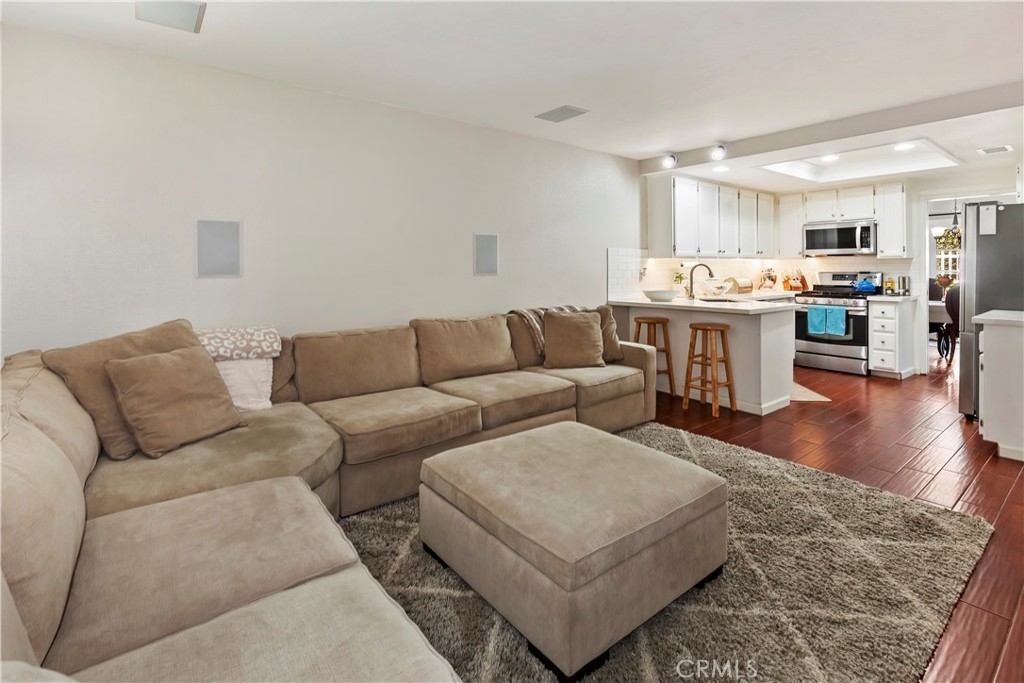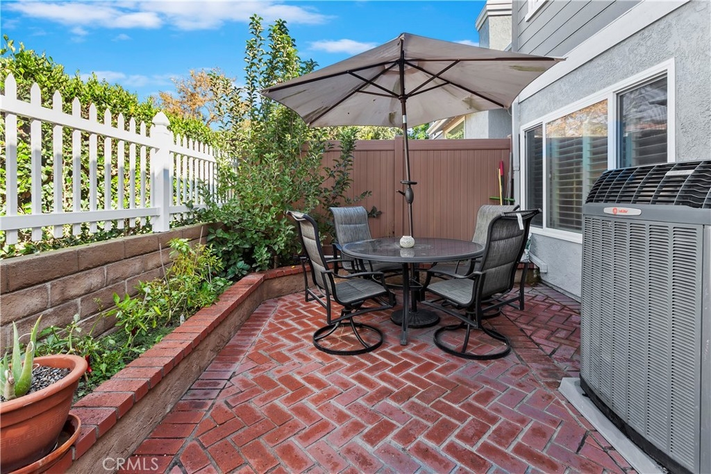 Beautifully remodeled and updated, this "Townhome Style" unit shows extremely well and is the largest floorplan in the Grandview Tract with almost 1,800 sq ft. There is a private gated courtyard leading to a covered porch and formal entry with a Ring doorbell and custom wrought iron staircase. The HOA has been busy and recently re-roofed, re-plumbed (Pex Piping), new skylight plus dual-pane windows and doors, and painted the exterior of the building. The floorplan offers 3 large bedrooms plus a Huge Separate Office retreat that can be used as a nursery or exercise room, large living room with fireplace and separate wet-bar area plus a separate family room with recessed surround sound speakers (Note: Distressed Wood Style Porcelain Tile Flooring Throughout). The home has been freshly painted inside, the kitchen has been updated with custom Quartz counters, newer stainless steel appliances, recessed lighting throughout, the bathrooms have been updated/remodeled and the HVAC heating & cooling system features a Nest control system and is only 7 years old. The backyard patio not only includes the Hampton Bay table, chairs and umbrella, but features a new white picket fence, raised brick planter and a delicious Golden Crisp Apple Tree. This unit has a premium location just across from the Grandview Crest Community Clubhouse, pool & spa and is a short walking distance to the "Award Winning Lake Forest Elementary School" and large community park with a children's playground and additional tennis courts.