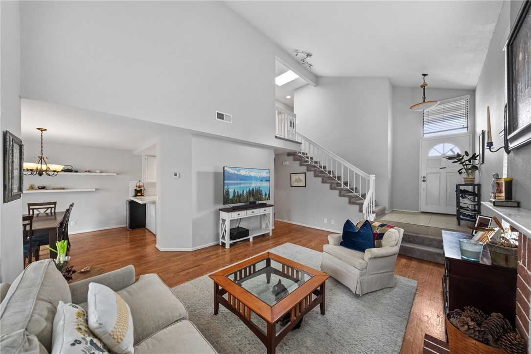 A rare end-unit condo that truly lives like a single-family home - welcome to Grandview Crest in the heart of Lake Forest. This light-filled 3-bedroom, 2-bath residence offers over 1,300 sq ft of comfortable living, soaring high ceilings upon entry, a cozy fireplace, and a skylight that floods the home with natural light. The open living area flows seamlessly to a private backyard with a covered patio - perfect for morning coffee, entertaining, or unwinding under mature trees with no direct neighbors behind you. As an end unit with only one shared wall and one of the largest yards in the community, this home offers a level of privacy rarely found in condo living. Additional highlights include a 2-car garage, a recently redone roof, and a layout that feels spacious and functional for everyday living. Life at Grandview Crest extends beyond your front door. Residents enjoy two sparkling pools (one with a clubhouse), a spa/hot tub, two tennis courts, and a basketball court. The HOA is known for its vibrant community spirit, hosting festive holiday events and neighborhood gatherings that make it easy to connect and feel at home. Located in the highly regarded Saddleback Valley Unified School District and just minutes from Lake Forest Elementary, Serrano Intermediate, and El Toro High, this home is also close to parks, hiking trails, shopping, and dining. Plus, you’re only about 20 minutes from Orange County beaches - bringing coastal living within easy reach at an incredible price point. Private, spacious, and perfectly located - this is Orange County living done right.