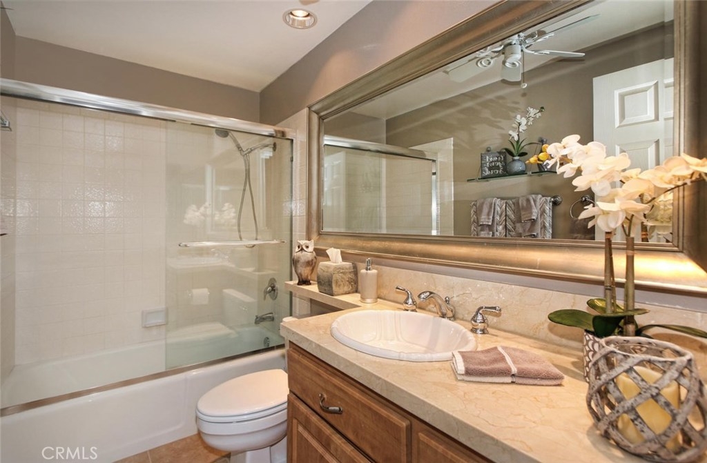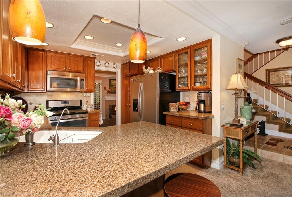 Welcome to your new home in The Grandview Crest Community. This beautiful home offers 3 bedrooms and 2.5 baths plus a master bedroom retreat that could easily be converted into a 4th bedroom. Rarely on the market and the largest unit in the community, this home is located in a highly desirable school district and it’s walking distance to Montbury Park. From the moment you walk into this property you feel the warmth and comfort of home. Some of the upgrades include: soft water and alkaline drinking water system, recessed lighting, refinished cabinets, granite countertops, granite wet bar and wine cooler, newer carpet, plantation shutters, upgraded fireplace and mantle, in-ceiling speakers for surround sound , raised redwood deck with gas fire pit on the patio, outdoor speakers, two water fountains in back and one large one in the front, custom ‘California’ patio cover , sprinkler systems in front and back yard, brand new water heater and a Nest thermostat. This wonderful community offers 2 beautiful pools and Tennis Courts. The HOA re-piped all of the units in 2018. The HOA is currently in the process of painting the exterior on all of the units. It will look like new! Don’t miss this opportunity to buy an amazingly well-kept home!