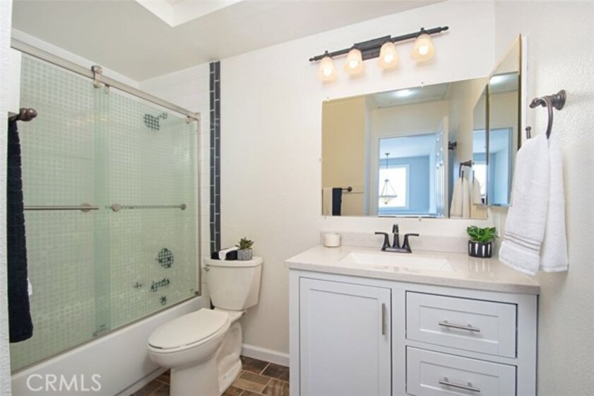 Welcome home to your spacious 3 bedroom/2.5 bathroom end unit condo located in the highly desirable community of Grandview Crest. Nestled in the interior of the tract, the cute front porch overlooks a peaceful common lawn area, perfect for entertaining and BBQs. The entry leads into a large living area with lots of natural light that flows into the kitchen and dining area. The kitchen features new quartz countertops, subway tile backsplash, and stainless steel appliances. Direct access to a 2-car garage, with plenty of storage and laundry area. Upstairs is a spacious master ensuite as well as two good size secondary bedrooms. All bathrooms have been updated with new quartz countertops, new vanities and enclosed shower/tub combinations upstairs. New plush carpeting in the bedrooms and upgraded wood laminate flooring throughout the living and kitchen area. The condo's exterior has been repainted. Community pools and spa, tennis courts, basketball court, and a clubhouse that can reserved for special events. Close to shopping and restaurants. Walking distance to award winning elementary school, Pittsford Park, and hiking and biking trails along Aliso Creek. Nearby 241 Toll Road access and freeways. Virtual tour: https://vimeo.com/previewfirst/download/421160004/c1620f2759