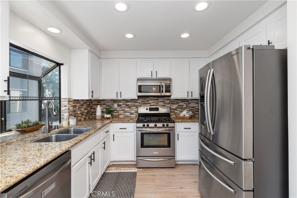 Welcome to this beautifully updated 3-bedroom, 2.5-bathroom townhome in the highly coveted Grandview Crest community. Covering 1,274 square feet, this gem features an open, functional layout with expansive windows that fill every room with natural light, complemented by efficient air conditioning for year-round comfort. Step inside and discover a space designed for entertaining family and friends. The sleek, updated kitchen and stylish bathrooms set the stage for memorable gatherings, while the new vinyl wood flooring, complete re-pipe, and a new roof in 2022 provide peace of mind. The spacious patio offers a seamless blend of indoor-outdoor living–a superb venue for lively barbecues, casual get-togethers, or simply unwinding in a relaxed setting. An attached two-car garage adds convenience and ample storage to round out this exceptional home. Grandview Crest offers resort-style community amenities, including pools, tennis and basketball courts, and a welcoming clubhouse. Plus, Montbury Park is just across the street, where scenic walking paths, picnic areas, and lush green belts enhance your everyday living experience. Centrally located near shopping, restaurants, freeway access, and all the vibrant attractions that Orange County has to offer, this townhome is not only a haven of modern comfort but also an entertainer’s delight. Don’t miss your chance to call this incredible property home!