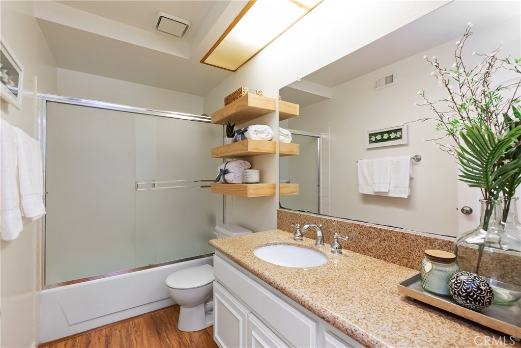 This stunning home is in a prime location of the Grandview Crest of Lake Forest, a well-appointed residential community with affordable price. Step through the gracious entryway into the light and open living room with modern fireplace, new floor and subtle recessed overhead lighting. Modern updates abound in the kitchen and adjoining dining area. Large floor tiles in pleasing off-white complement the classic granite counter tops and attractive warmth of the wood cabinetry. Updated stainless appliances and double sink give a sleek final flourish to the space. Ascend the stairs to Dual Master Suites: Both have big size bedrooms with rich variegated flooring and private bathrooms featuring sleek granite counters. The unit also boasts two generously-sized outdoor spaces. The front space offers views of the lush greenbelt of Grandview Crest. The space off the kitchen/dining area provides endless opportunities for entertaining friends and family. The property also features energy-saving dual-pane windows throughout. The attached two-car garage has a storage area plus built-in workbench. Grandview Crest offers an abundance of resident amenities: two pools, a clubhouse, tennis and basketball courts, plus plenty of guest parking. The area is served by the highly desirable Saddleback Valley Unified School District. Nearby freeways offer easy access to many of Orange County's top employers. Enjoy the parks and trails, as well as the dining and retail sites along the El Toro corridor!