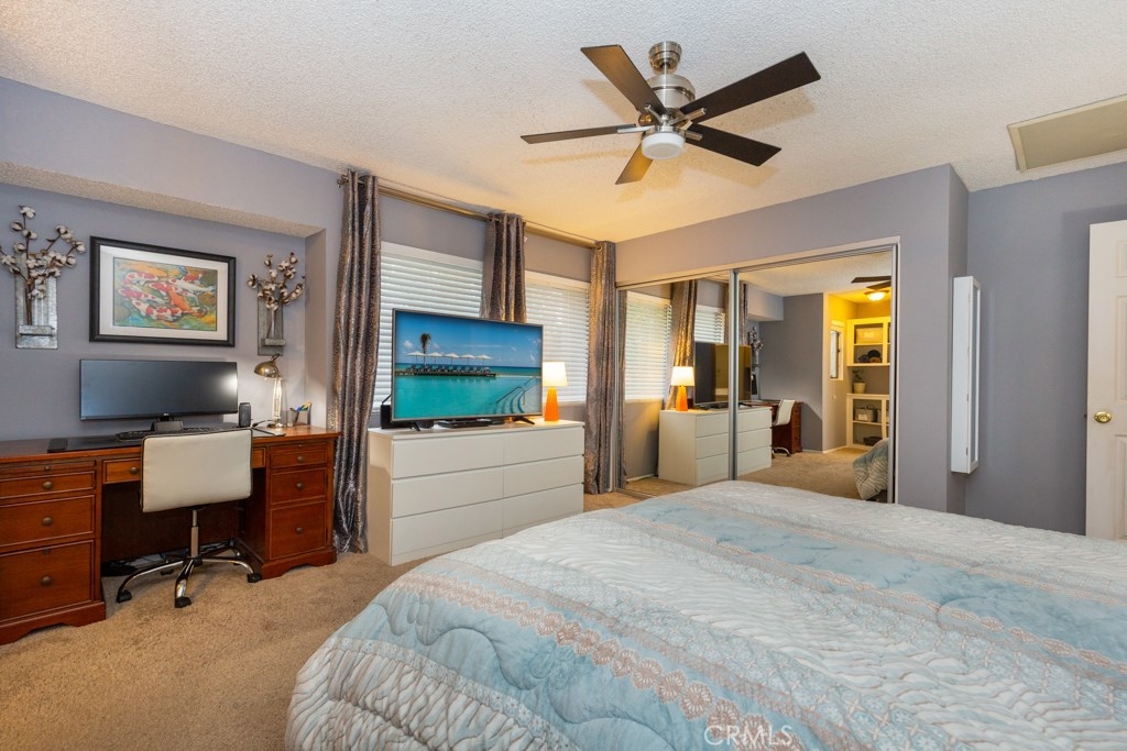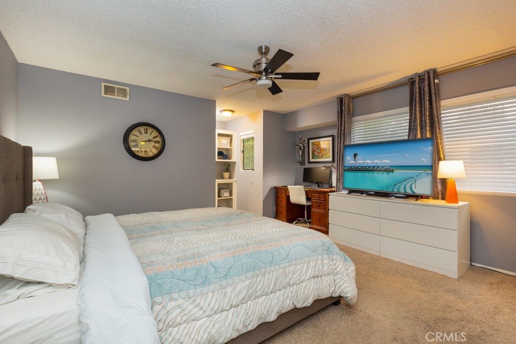 Located in the highly desirable Grandview Crest tract, this property has dual master suites, each with private bathrooms and bath/shower and an additional 1/2 bathroom for guests. The kitchen has been remodeled with custom cabinets, quartz counters, recessed lighting and lots of storage! The kitchen and dining area opens into a spacious private deck. The deck has been newly painted and has a water hookup outside. The property exterior has also newly been painted and is ready to show! This is a great neighborhood with many amenities including 2 pools, 2 tennis courts, a basketball court, a clubhouse, bike trails and a large park close by; perfect for relaxing, entertaining, and enjoying indoor and outdoor life!