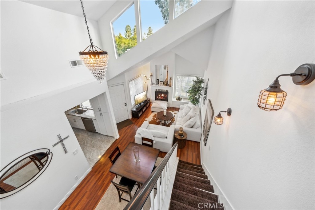 Charming end unit with no one above or below. Re-piped, Newer Roof, Water Heater & Kitchen Disposal! Located in the heart of Lake Forest, in the quaint Whispering Hills community. TWO bedrooms, TWO full baths (one bath completely updated), PLUS A LOFT ~ ideal for a quiet office, play area or gym. Carriage style townhouse with a one-car garage directly below the unit for easy access. Vaulted ceilings & numerous windows w/ natural light peering through, make this space open, bright & cheerful. The kitchen has been beautifully updated & features oversized picture kitchen window to view the large private patio! Outdoor space will be perfect for a Summer BBQ or an evening under the stars. Back inside discover a cozy gas fireplace located in the living room, just waiting to be enjoyed. The primary bedroom- it will make all your dreams come true! Spectacular En-suite w/ luxury private tub & shower & updated vanity w/ fixtures. Also, a walk-in closet w/ extra space for all your prized possessions. Three updated ceiling fans will add comfort to the hot summer months. The Whispering Hills community offers 3 pools, spas, kids play areas, acres of greenbelt, & generous guest parking. Award winning Saddleback Valley schools and Pittsford Park are nearby. Close to shops, restaurants, gorgeous SoCal beaches, quick freeway & Toll Road access & so much more!