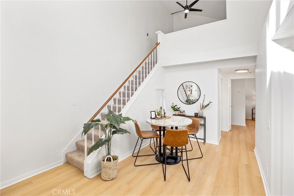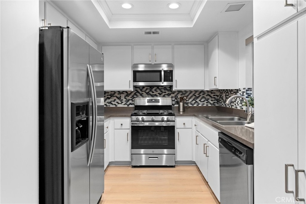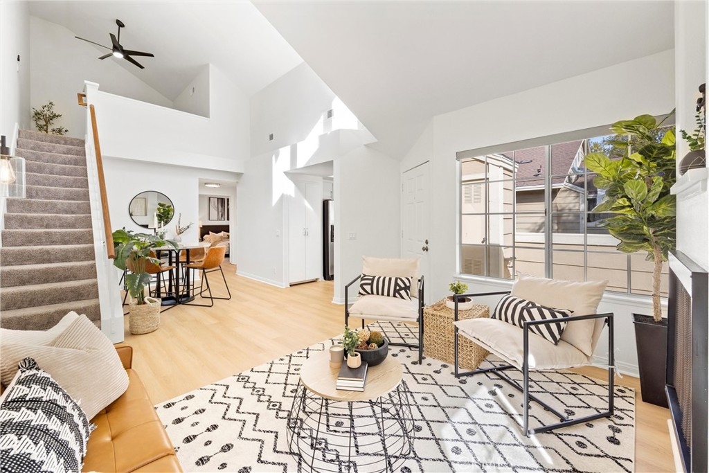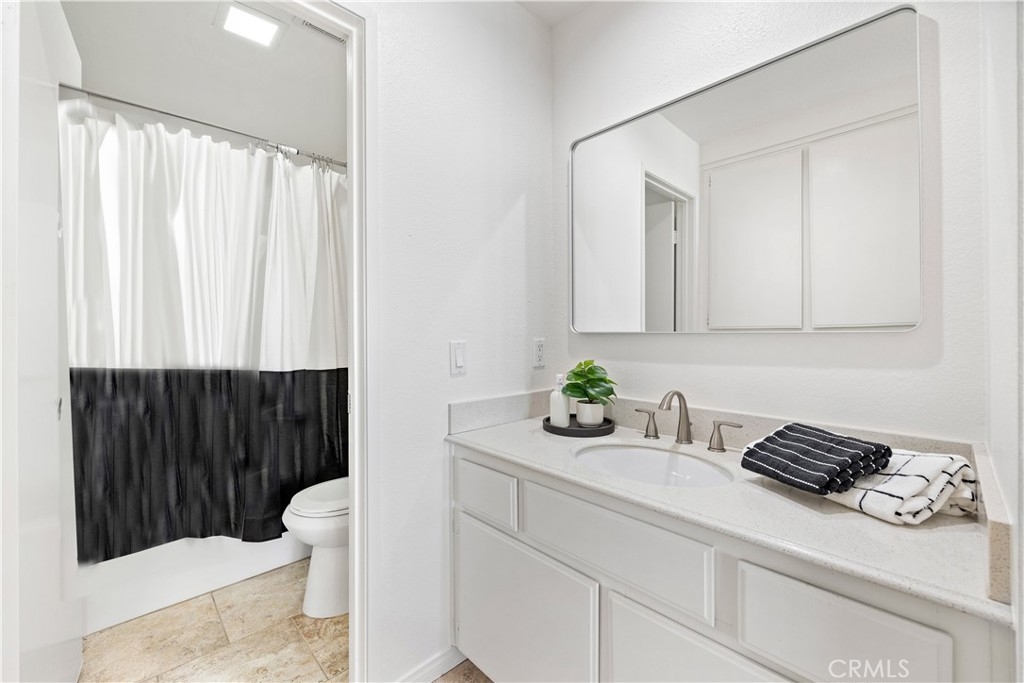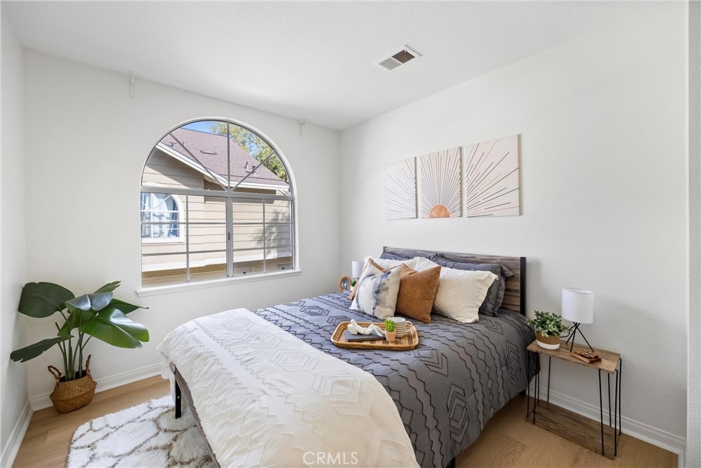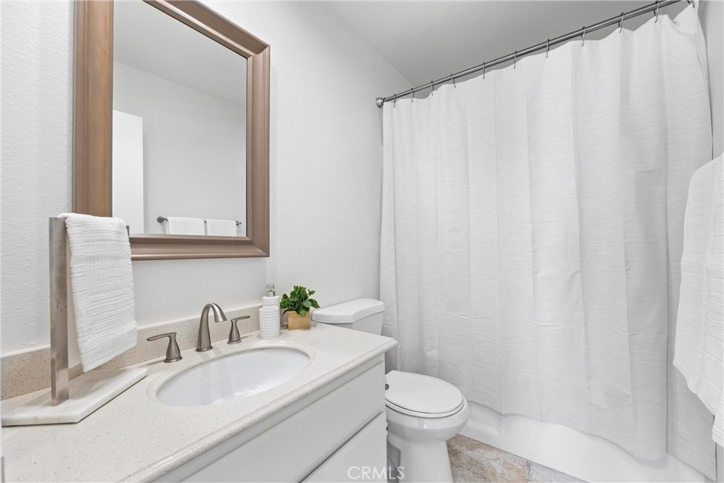 Welcome to 26626 Rosepath, a stunning 2-bedroom, 2-bath + loft end unit condo nestled in the highly sought-after Normandale Heights, Whispering Hill Community of Lake Forest. This modern gem offers a prime location with no neighbors above or below, ensuring peace and privacy. As you step inside, you’ll be greeted by an open floor plan bathed in natural light, highlighted by impressive 2-story vaulted ceilings. The cozy living room features an electric starting gas fireplace and bench seating that overlooks the lush greenbelt, creating a warm and inviting atmosphere. The beautifully refreshed kitchen features refaced cabinets with new doors and drawers, a new GE stainless steel 5 burner stove, stainless steal appliances, quartz countertops, a tile backsplash, new flooring, LED lighting and a large picture window that fills the space with light. The spacious primary bedroom boasts vaulted ceilings, new flooring, an en-suite bathroom, and a large walk-in closet, while the second bedroom is equally generous, showcasing new flooring and plenty of sunlight. A versatile loft area adds extra living space, perfect for a home office or guest room. Recent upgrades include beautiful luxury vinyl plank flooring, textured ceilings, fresh paint, new LED lighting, and a modern ceiling fan. The brand-new AC, furnace, and ducting installed in October 2023, along with a new roof and plumbing (all paid for by the seller), provide peace of mind. The outdoor deck has also been completely redone, making it a perfect spot for relaxation. This tranquil side of the Whispering Hills community consists of only 50 units, ensuring a quiet environment. Residents enjoy access to three swimming pools, spas, playgrounds, and plenty of green belts, along with ample guest parking. The location is surrounded by gorgeous homes, award-winning schools, and lush landscaping, with horse trails nearby and Pittsford Park just down the hill. Convenient access to the 5 and 405 freeways, the 73 toll road, shopping, dining, and beautiful beaches makes this an ideal place to call home. Don’t miss out on this incredible opportunity!