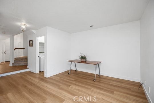 A true gem in the heart of Lake Forest Light and bright Corner model, 3 bed, 2-1/2 bath, with one wall attached on one side, that feels like a home. Overlooking Greenbelt with garden views, in sought-after Serrano Highlands, the largest of the three available plans in the community. Meticulously maintained, upgraded with designer paint in neutral colors, brand-new moisture-resistant luxury flooring throughout, except for the new carpeting on stairway. Light switches and electrical outlets/receptacles have been replaced with newer models. Enter via Garage entrance or through Patio gate into a welcoming Great room with a cozy fireplace (wood/gas) and downstairs bathroom. Formal dining room leads into kitchen, with outside garden patio views (backyard surrounded by new vinyl fencing and gate). Kitchen has attached Breakfast Bar leading to Family room/office/breakfast nook. Washer/dryer included in the separate Laundry room, with add'l storage. All three bedrooms are upstairs, with two additional (full) bathrooms with showers/tubs. Convenient Whole-house Water Filtration system adds convenience and comfort. This is a jewel with so much opportunity to upgrade the way you want. Low taxes. Enjoy community spa/pool, baseball, tennis, basketball, picnic areas, Tamarisk Park, Peachwood Park, and Tot Lot. Close proximity to Irvine Spectrum and Foothill Ranch, dining, entertainment, etc.; high ranking schools in the Saddleback Unified School District, and not far from Lake Forest Sports Park and walking trails.