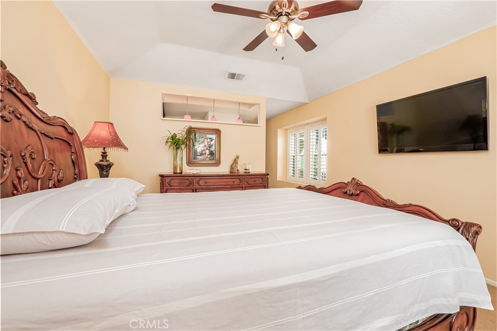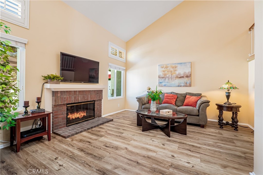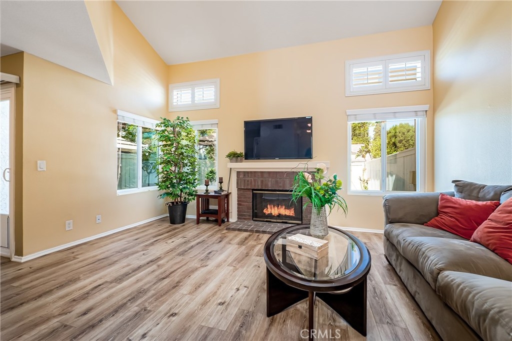 Beautiful refreshed and upgraded modern two level dual suite townhome with huge fenced yard/patio. You're in luck as this is qualified for VA, FHA and conventional financing!!! New wood look floor in living areas, LED lighting, new ducting being installed for the central air conditioning, high end dual pane windows throughout, all with gorgeous plantation shutters. Immaculate and bright with privacy, facing a grassy greenbelt with gate to access it from the yard. As you drive up you will be amazed buy the pristine maintenance of the community and pretty curb appeal with a 2 car direct access garage with steel backed roll up door. Walk through your gated courtyard entry to a home that exudes pride of ownership. Features include dual bedroom suites, gracious living room, large kitchen with a dining room size breakfast nook plus a formal dining room that can be used as a 3rd room such as an office or den. Soaring vaulted ceilings and clerestory windows allow the light to shine in. Cozy fireplace, smooth ceilings and neutral paint scheme. Enjoy the feel of a house! Prime location near guest and street parking in peaceful location. Walk to community pool, spa, tennis, basketball, baseball, tot lot and picnic area, Tamarisk Park and Peachwood Park. Ultra low property tax rate, NO Mello Roos and desirable schools.