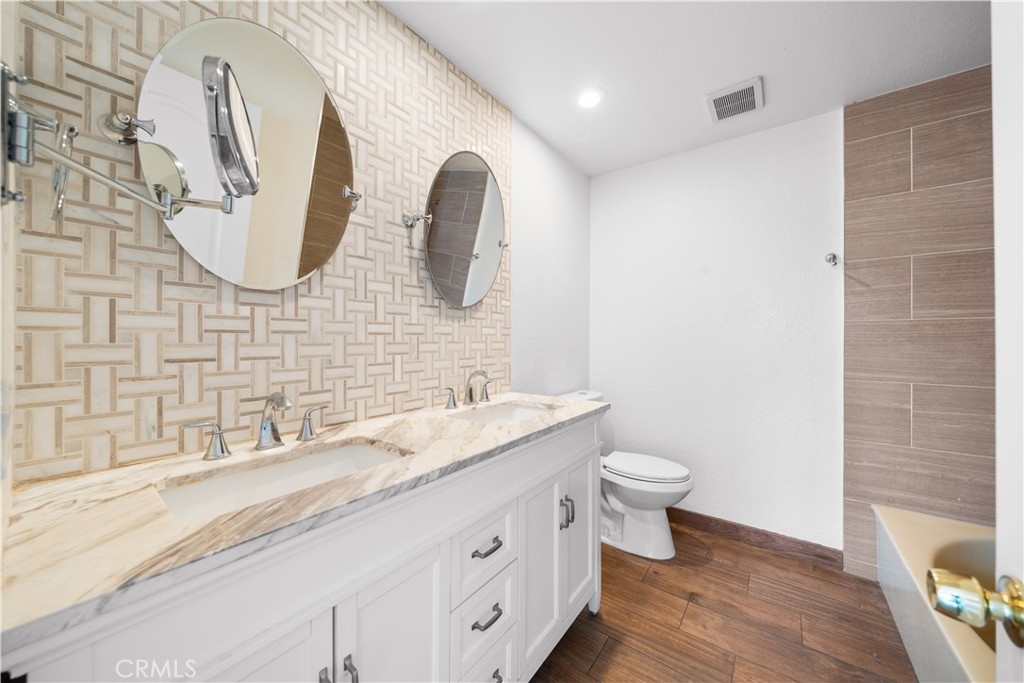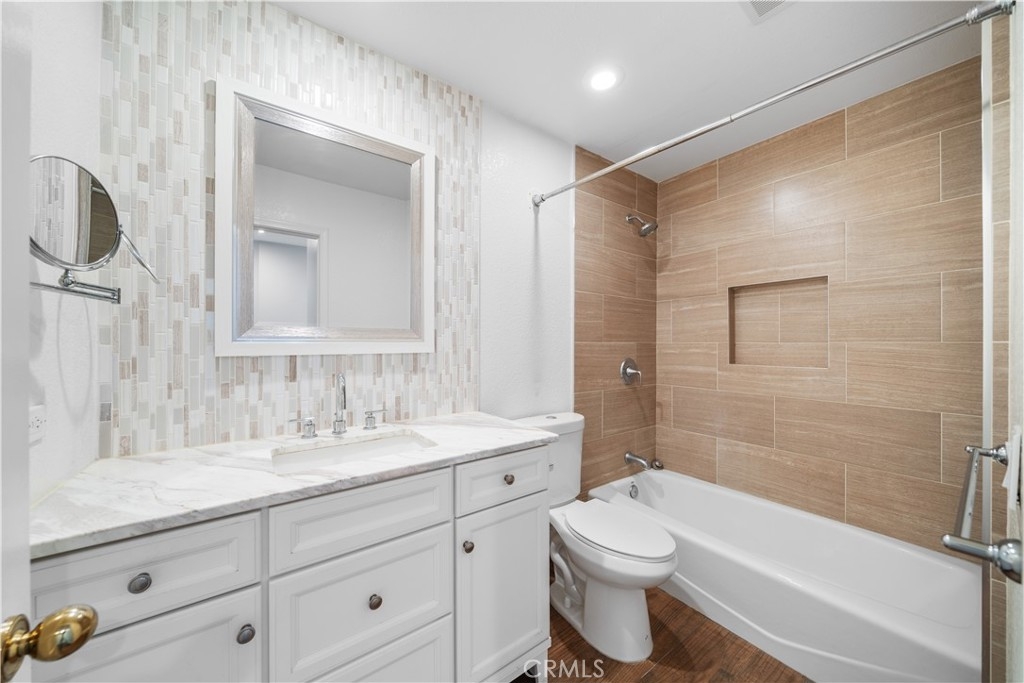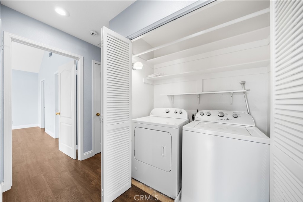 Welcome to this beautifully updated upstairs end-unit condo in the gated Lake Forest Shores community. This 2-bedroom, 2-bathroom home features a well-designed floor plan filled with natural light and soaring high ceilings. The cozy living room on the second floor had a fireplace, perfect for relaxing evenings. The spacious dining area offers outdoor views and opens onto a private patio through sliding glass doors, creating a seamless indoor-outdoor flow. The kitchen has granite countertops, stainless steel appliances, and even a wine fridge for entertaining guests. The primary bedroom suite is generously sized and features an en-suite bathroom with dual vanities, a soaking tub/shower, and a large walk-in closet. The secondary bedroom is versatile and can serve as a guest room or a comfortable home office. An indoor laundry area with storage adds convenience to your daily routine. Step outside to the well-appointed patio deck, ideal for summer barbecues or enjoying your morning coffee. The home also includes a single-car attached garage with ample storage space and access to plenty of guest parking. Residents of Lake Forest Shores enjoy incredible amenities, including tennis courts, a fitness center, basketball and sand volleyball courts, a junior Olympic pool, a lagoon, a sauna, and a clubhouse with a bar for social events. The location is unbeatable, with close proximity to the Irvine Spectrum, Mission Viejo and Laguna Hills Malls, Lake Forest Gateway, and an array of dining, shopping, and entertainment options along El Toro Road. This community is part of the highly regarded Saddleback Valley Unified School District, with excellent nearby schools: Foothill Ranch Elementary, Serrano Junior High, and El Toro High School. Don’t miss this incredible opportunity to claim this home as yours!